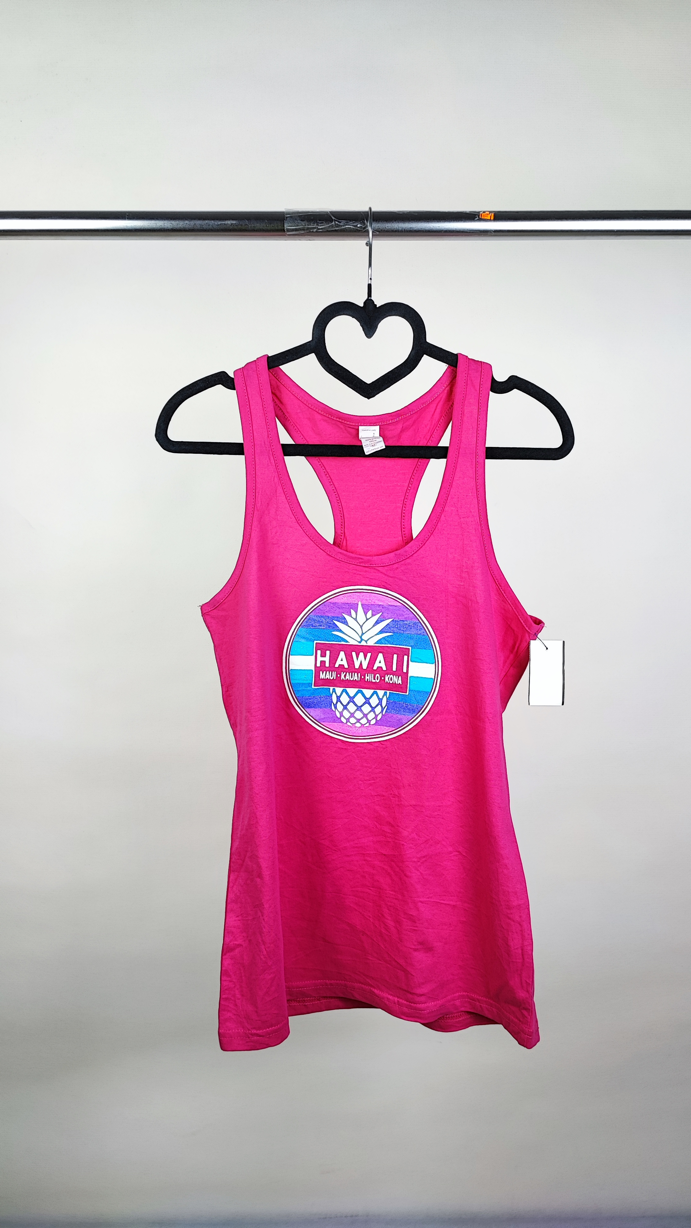 رنگ صورتی سرخابی جذاب آن به همراه لوگوی دایرهای طرح هاوایی (با تصویر آناناس)، استایلی شاد و پرانرژی به شما میدهد.
