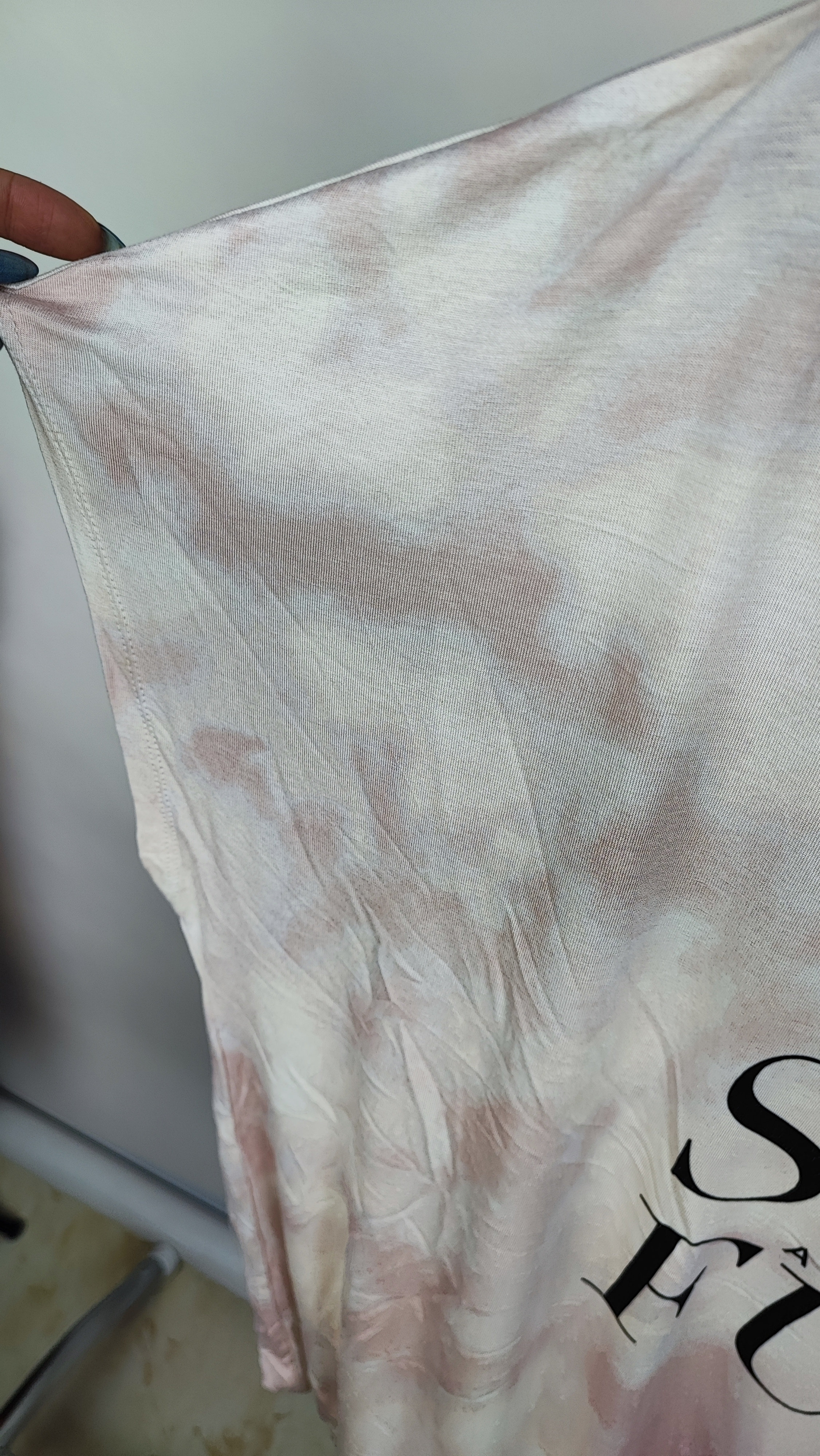 مدل یقه هفت باز و گره پایین تیشرت، استایل آن را از سادگی درآورده و به آن نما بخشیده است. چاپ باکیفیت و طرح ابروبادی ملایم آن، حس تازگی و تابستان را منتقل میکند.