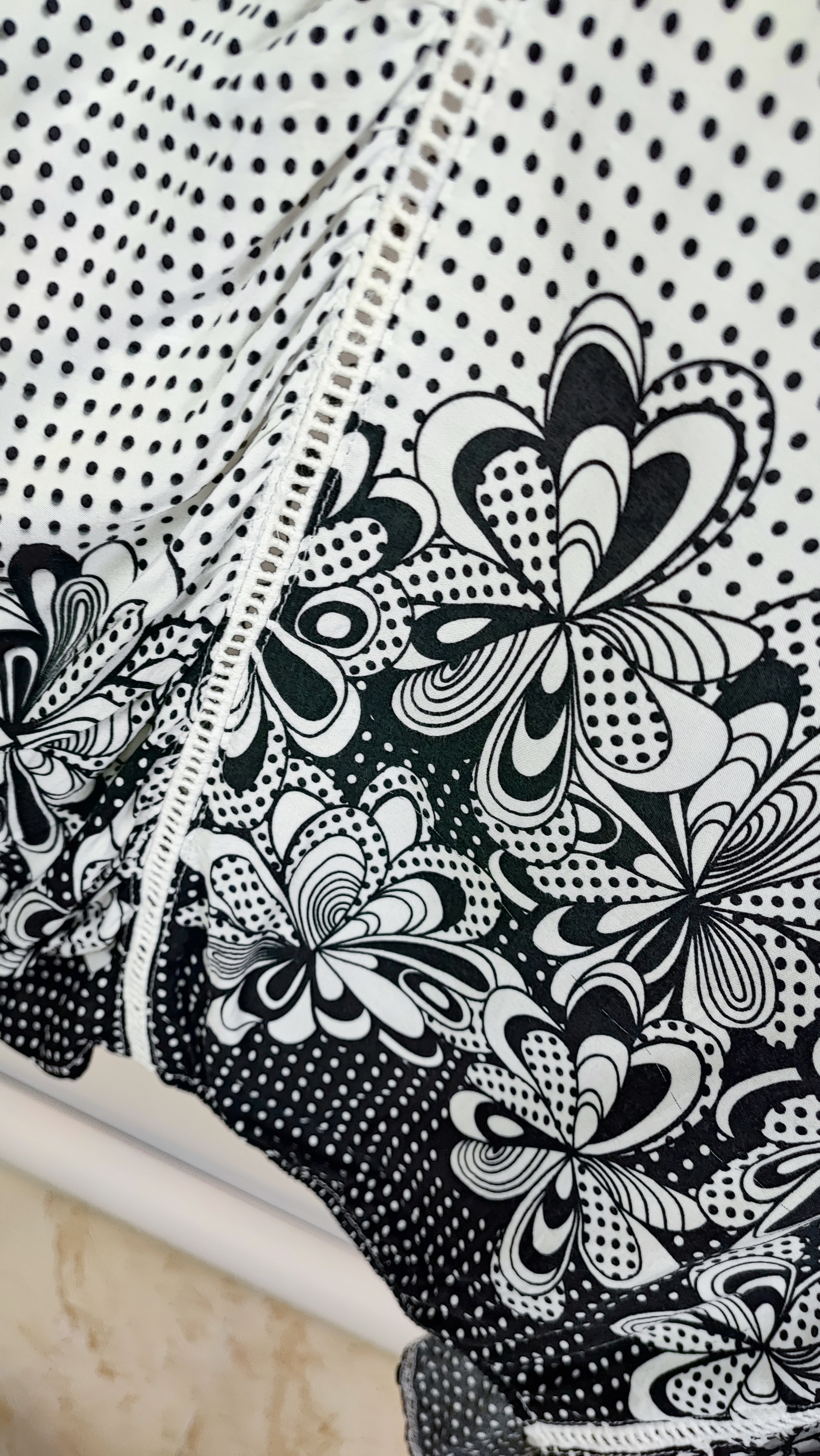 طراحی قوارهدار و مدل خفاشی این کار باعث میشود تا روی تن بسیار راحت باشد و فرمی آزاد و شیک ایجاد کند. پارچه حریر سبک این تونیک با ترکیب کلاسیک سفید و مشکی و طرحهای گلدار خاص در لبه پایینی، استایلی متفاوت به شما میبخشد. آستینهای سهربع آزاد و یقه گرد ساده، راحتی شما را در روزهای گرم تضمین میکنند. خرید این تونیک، دسترسی به کیفیت برندهای خارجی را با قیمتی بسیار اقتصادی و باورنکردنی برای شما فراهم میکند.
