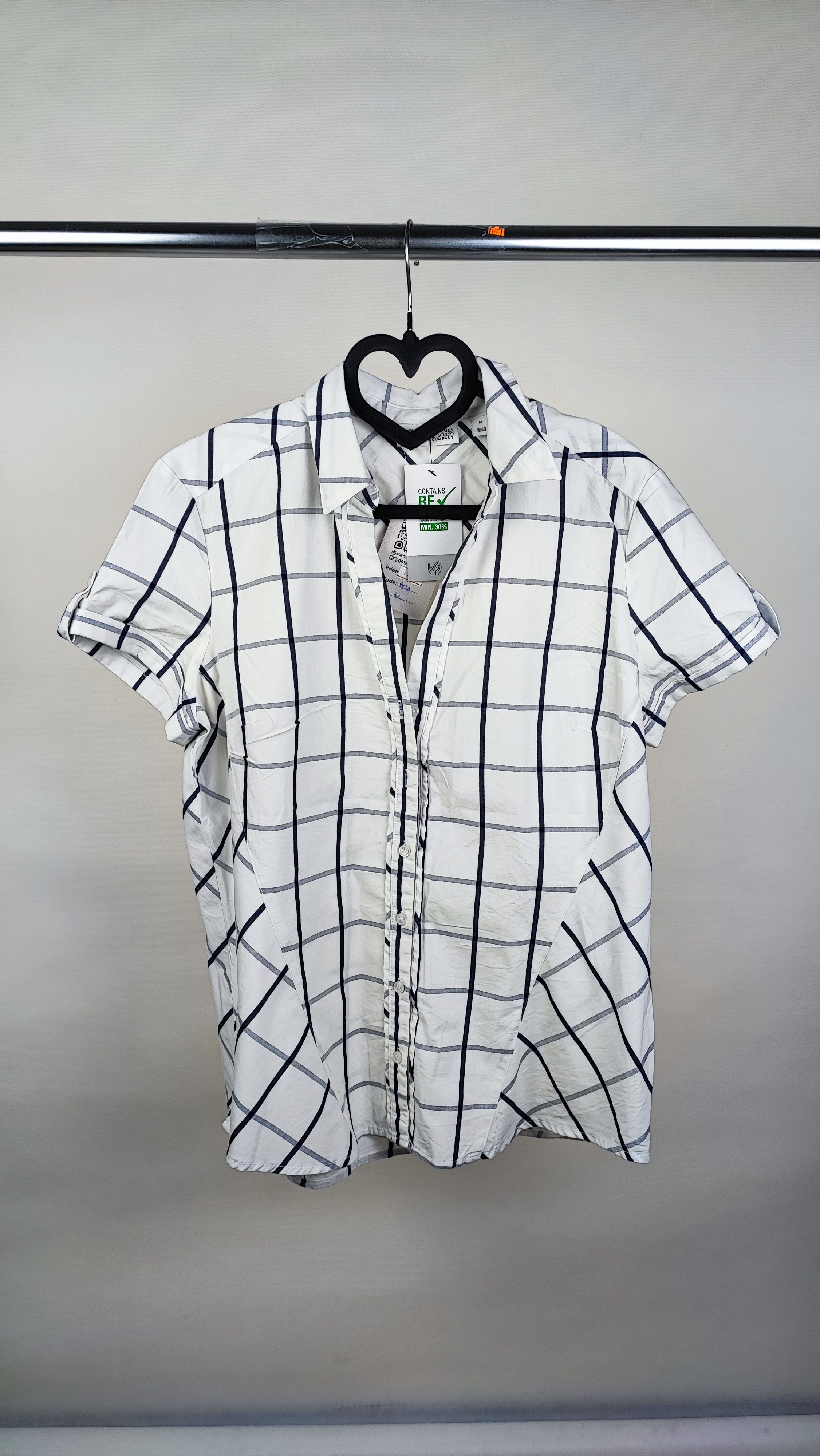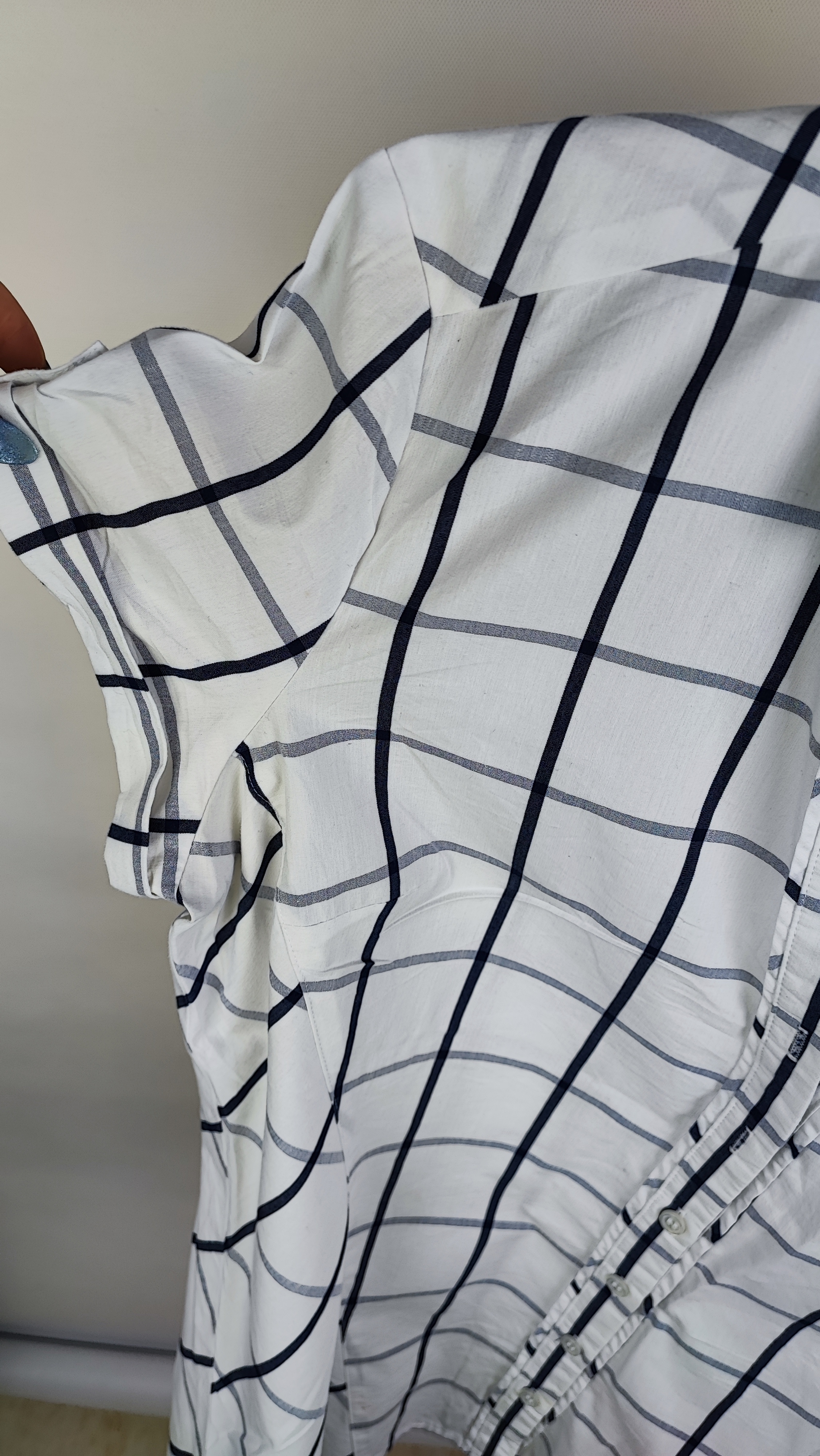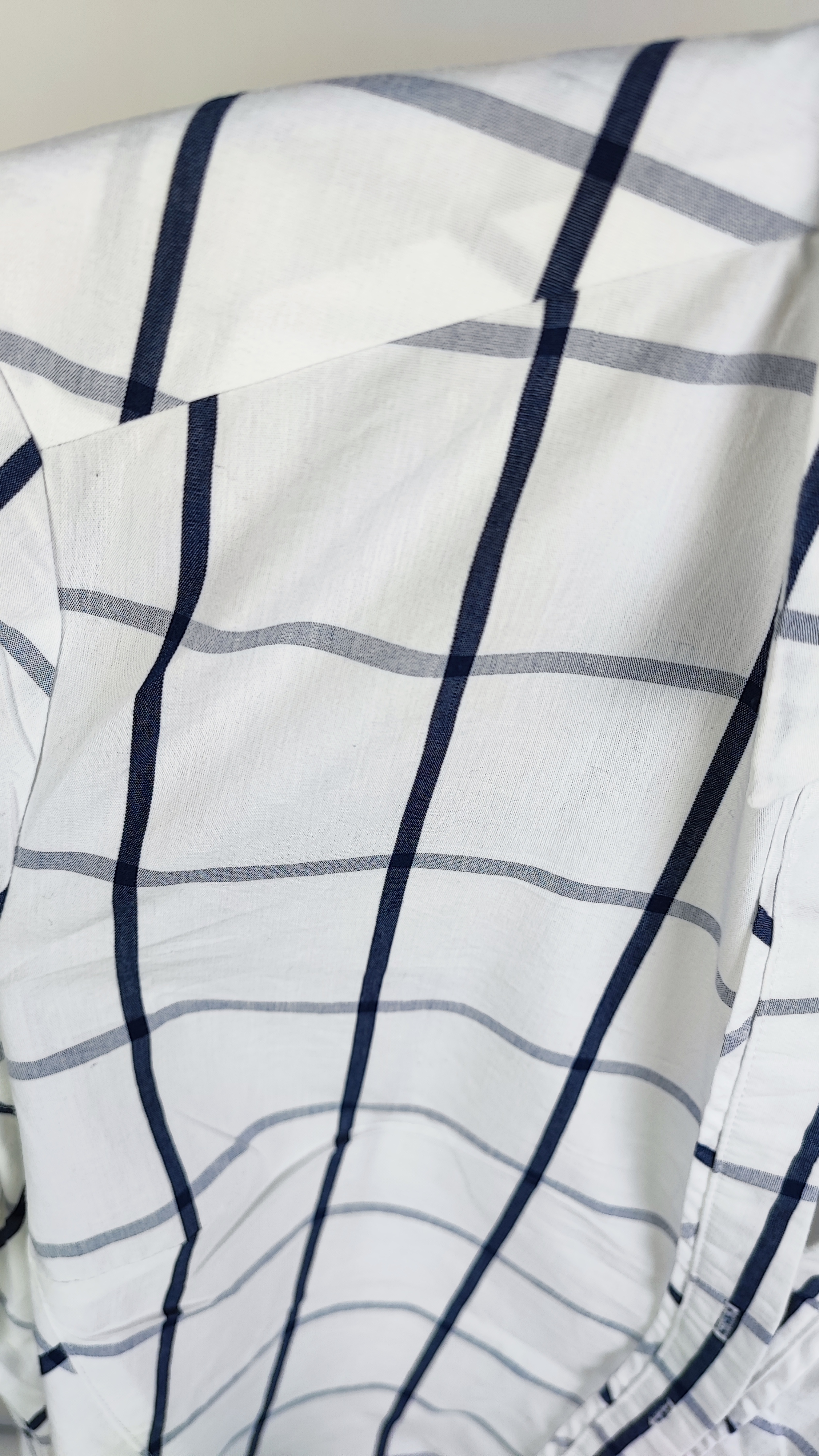 جنس پارچه ترکیبی هوشمندانه از ۶۶٪ نخ پنبه (برش خنک و ضد حساسیت)، ۳۱٪ پلیاستر (مقاومت در برابر چروک و ثبات رنگ) و ۳٪ اسپاندکس (کشسانی ملایم برای راحتی بیشتر) است. طرح ساده و شیک چهارخانه سرمهای روی زمینه سفید، این شومیز را برای استایلهای کژوال با جین یا استایلهای رسمیتر با شلوار پارچهای تیره، ایدهآل کرده است.