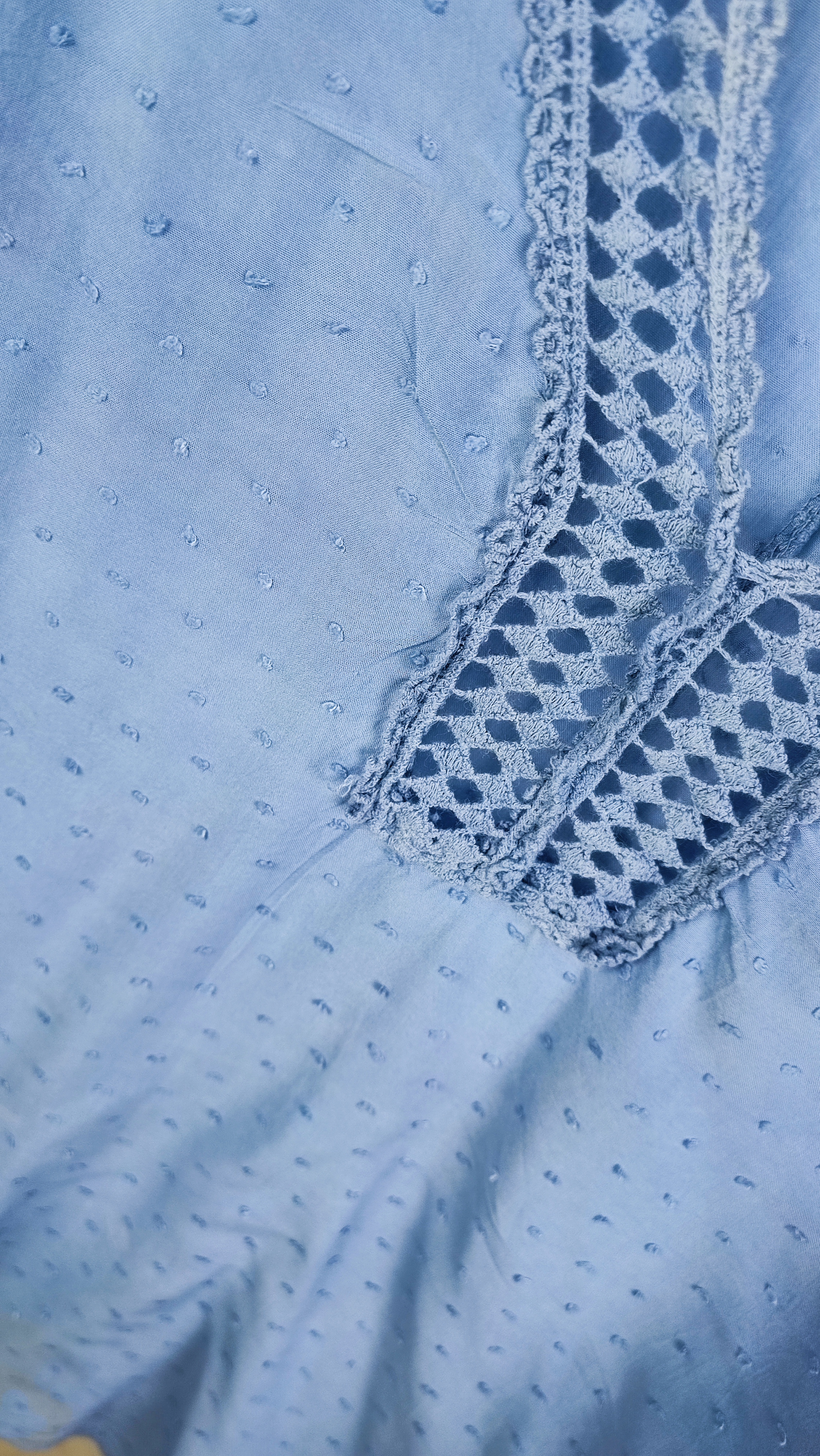 اگر به دنبال یک شومیز فوقالعاده خنک و سبک برای استفاده روزمره هستید که هزینهای بسیار اندک بابت آن پرداخت کنید، این مورد بهترین انتخاب است. این شومیز از پارچه نخی مرغوب با بافت ظریف (طرحدار) تهیه شده و در قسمت یقه و سرآستین دارای گیپور دوزی بسیار زیبایی است که به استایل شما جلوهای زنانه میدهد.