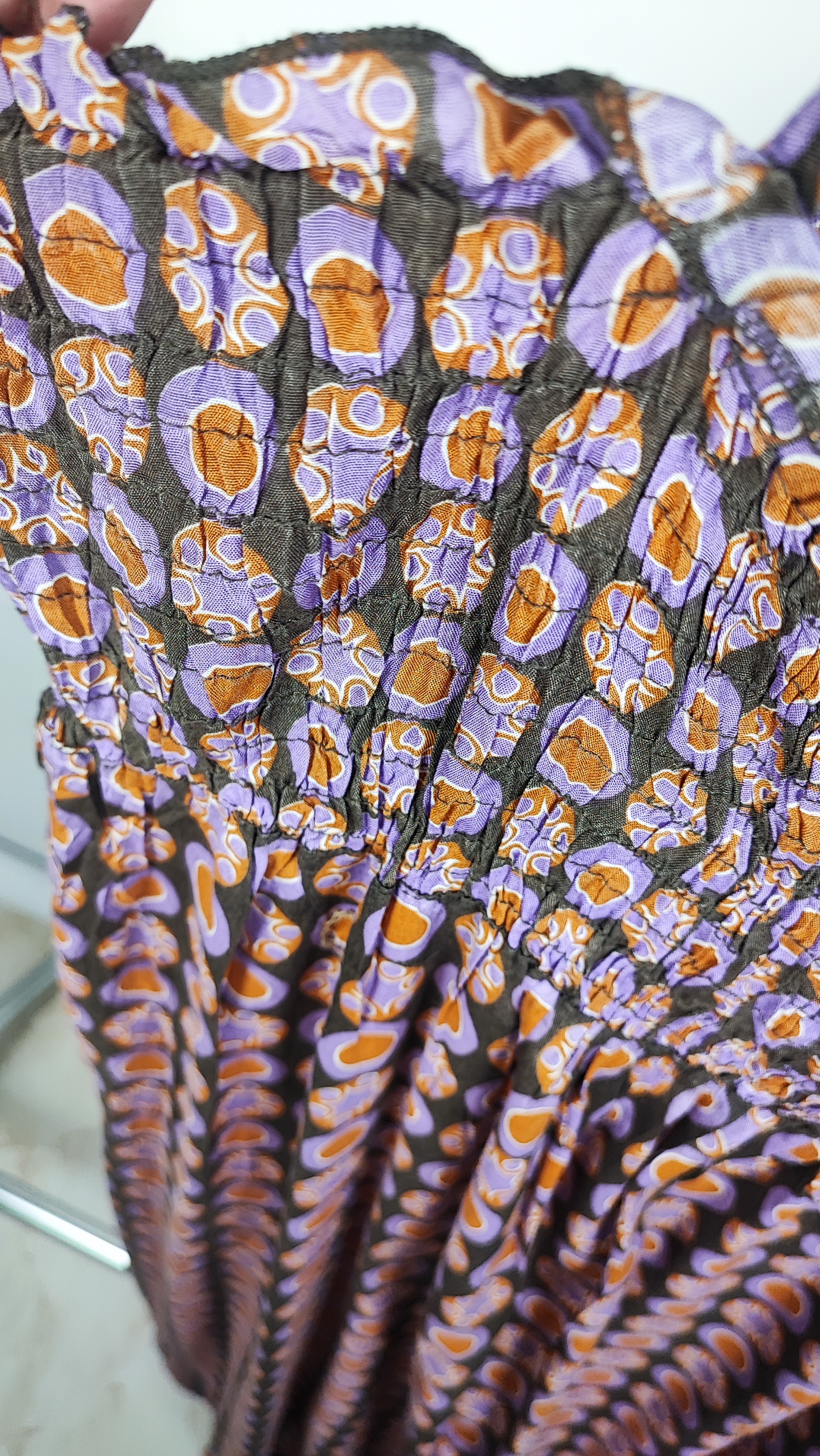 پارچه این کار بسیار سبک و با ریزش فوقالعاده است که به بدن نمیچسبد و احساس راحتی بینظیری را به شما میدهد. طراحی این پیراهن با الهام از استایل بوهو (Bohemian)، دارای کشسانی در ناحیه سینه است که به زیبایی روی بدن مینشیند و به شما اجازه میدهد تا آن را به راحتی بپوشید. بندهای سرشانه نیز قابل تنظیم هستند تا دقیقاً با فرم بدن شما هماهنگ شوند. این پیراهن، ترکیبی از اصالت یک برند جهانی و قیمتی باورنکردنی است که فقط یک بار فرصت خرید آن را دارید.