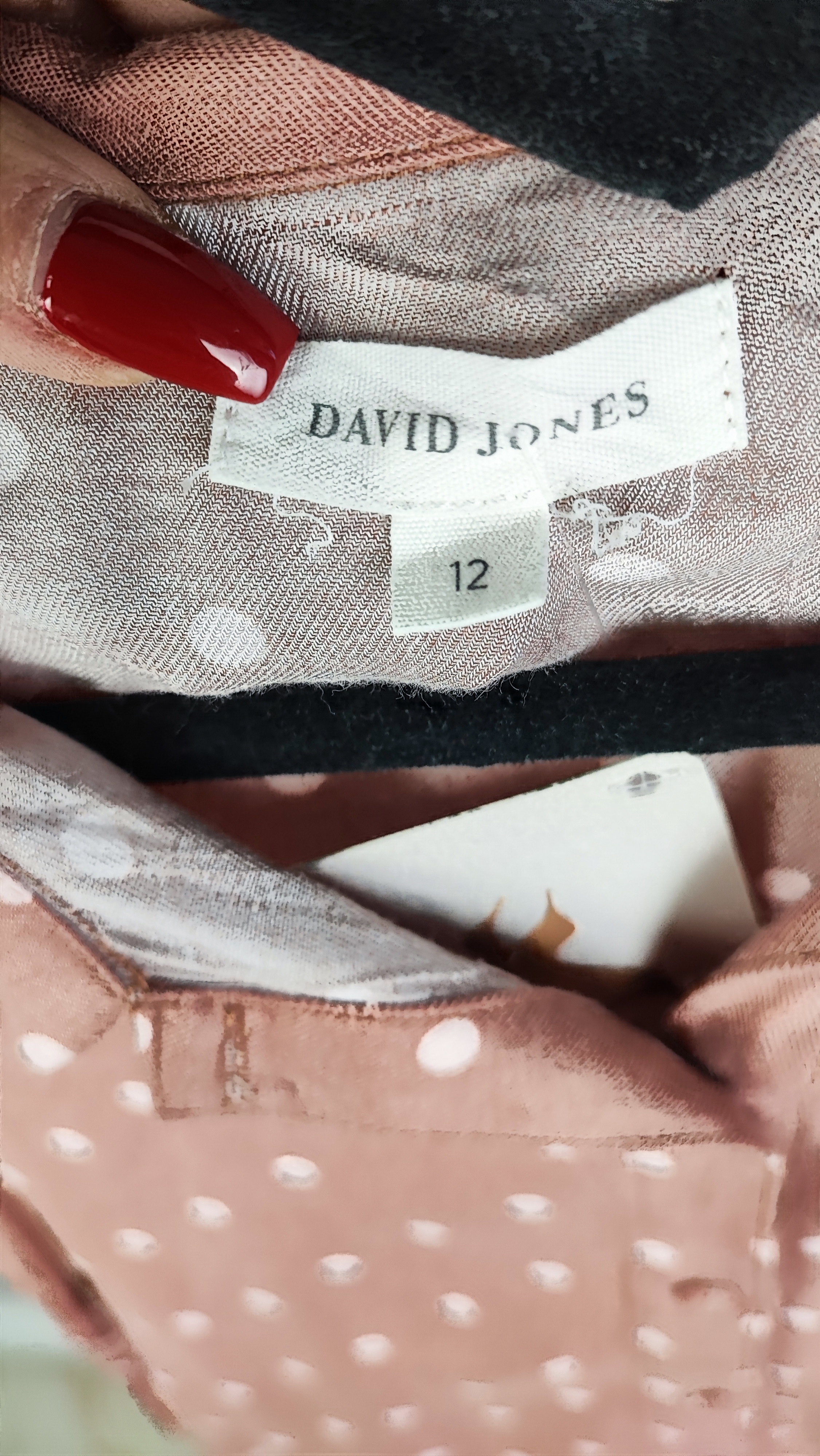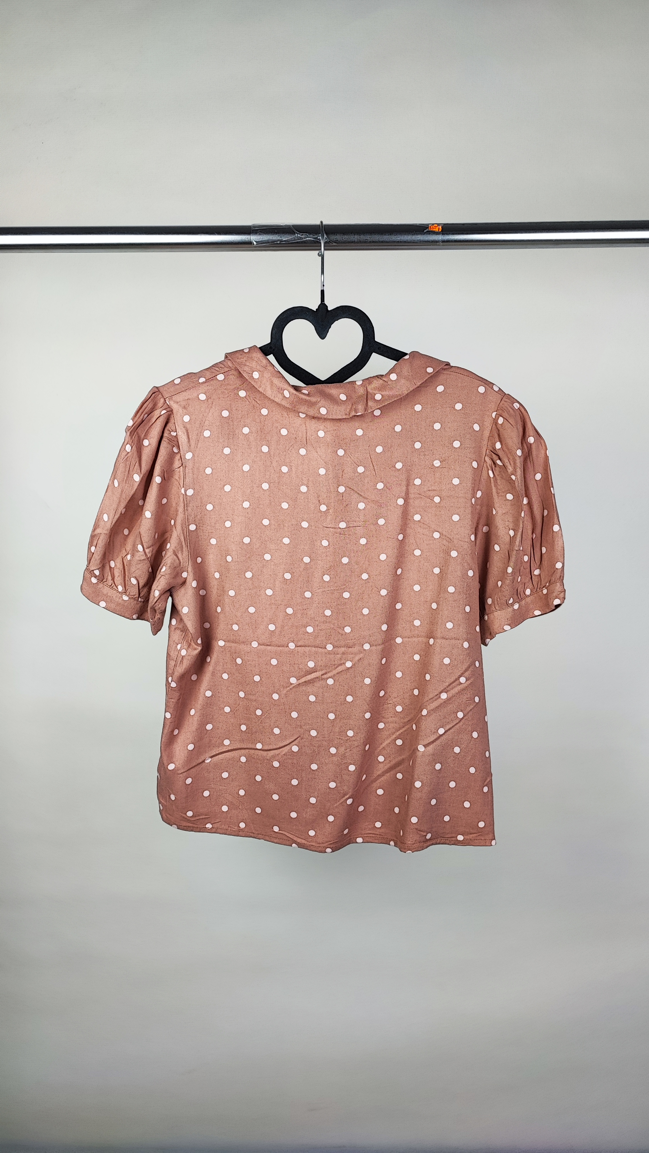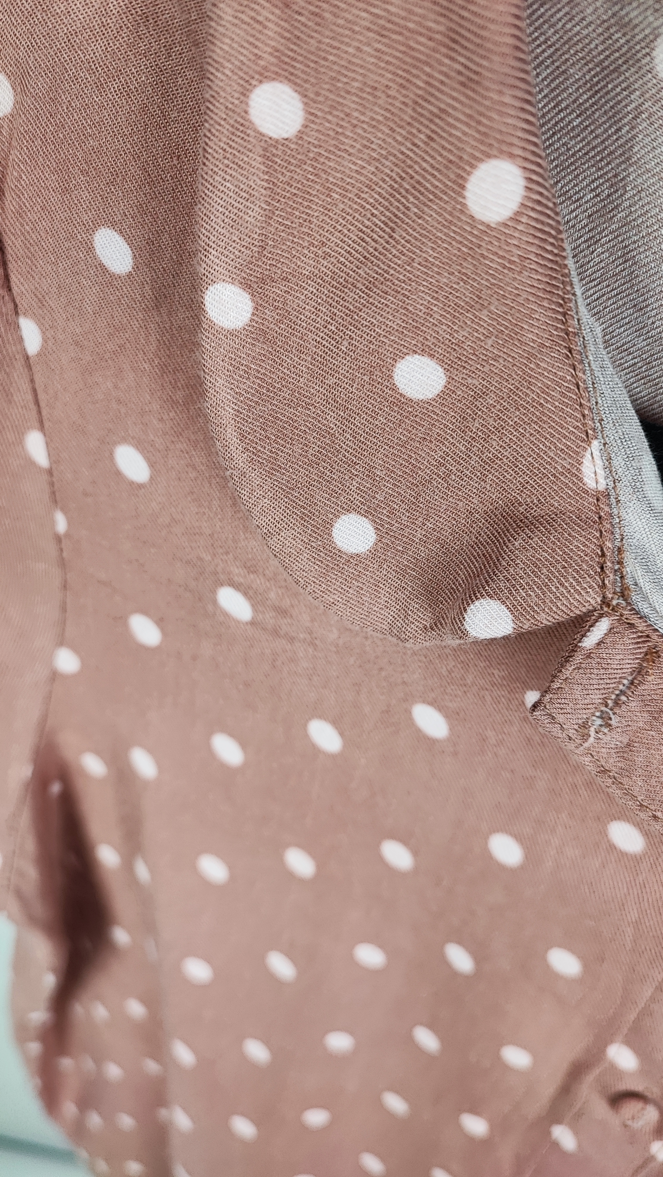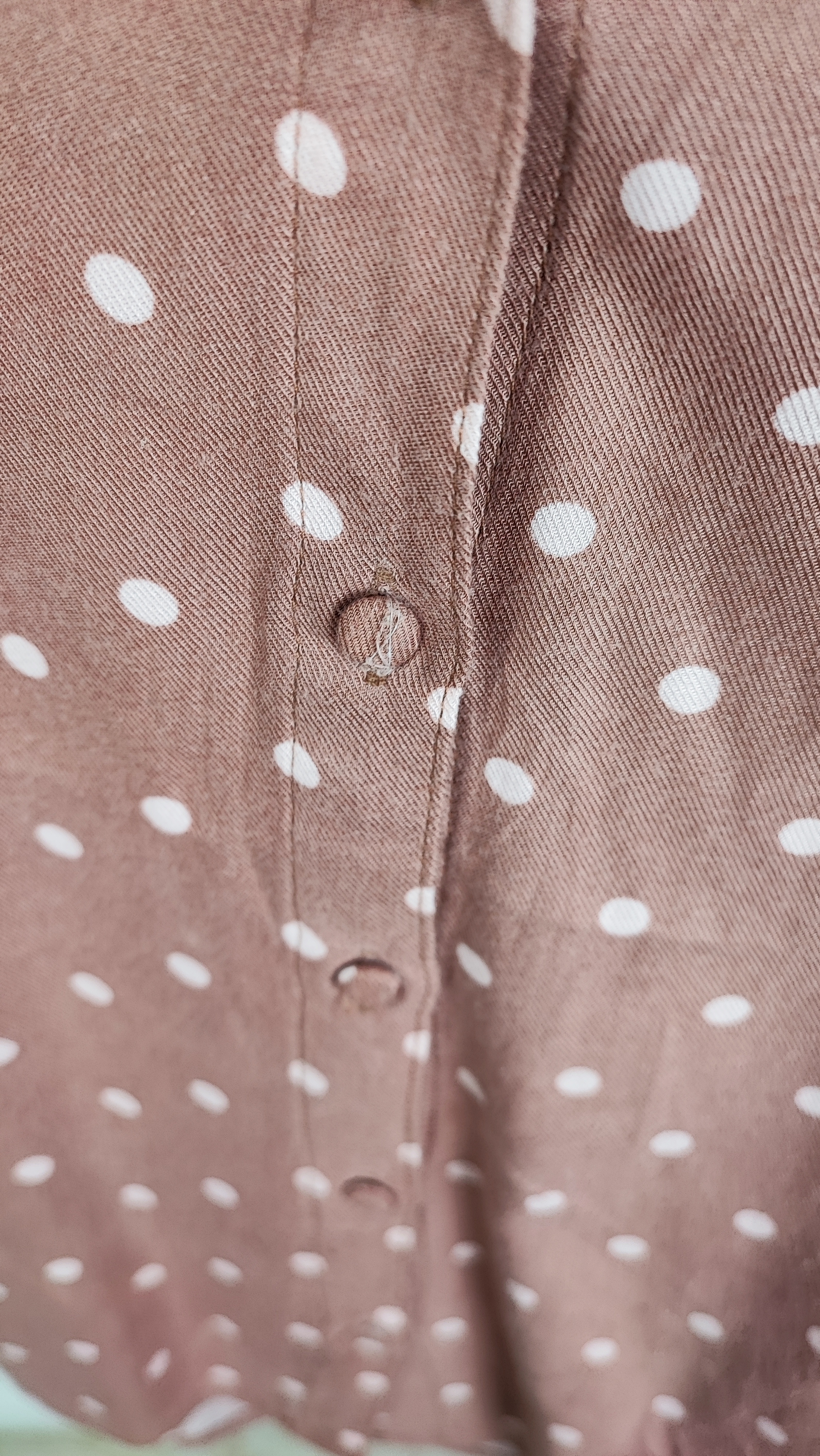 اگر به دنبال یک شومیز خنک، سبک و در عین حال شیک برای دورهمیها یا استفاده روزمره هستید، این شومیز از برند معتبر استرالیایی دیوید جونز (David Jones) انتخابی عالی است. جنس این کار ۱۰۰٪ ویسکوز (الیاف طبیعی) است که لطافت بینظیری دارد و در فصول گرم، حس خنکی فوقالعادهای به شما میدهد. طرح خالدار (Polka Dot) سفید روی زمینه رنگ کالباسی چرک، هرگز از مد نمیافتد و به راحتی با شلوار یا دامن مشکی و جین ست میشود.