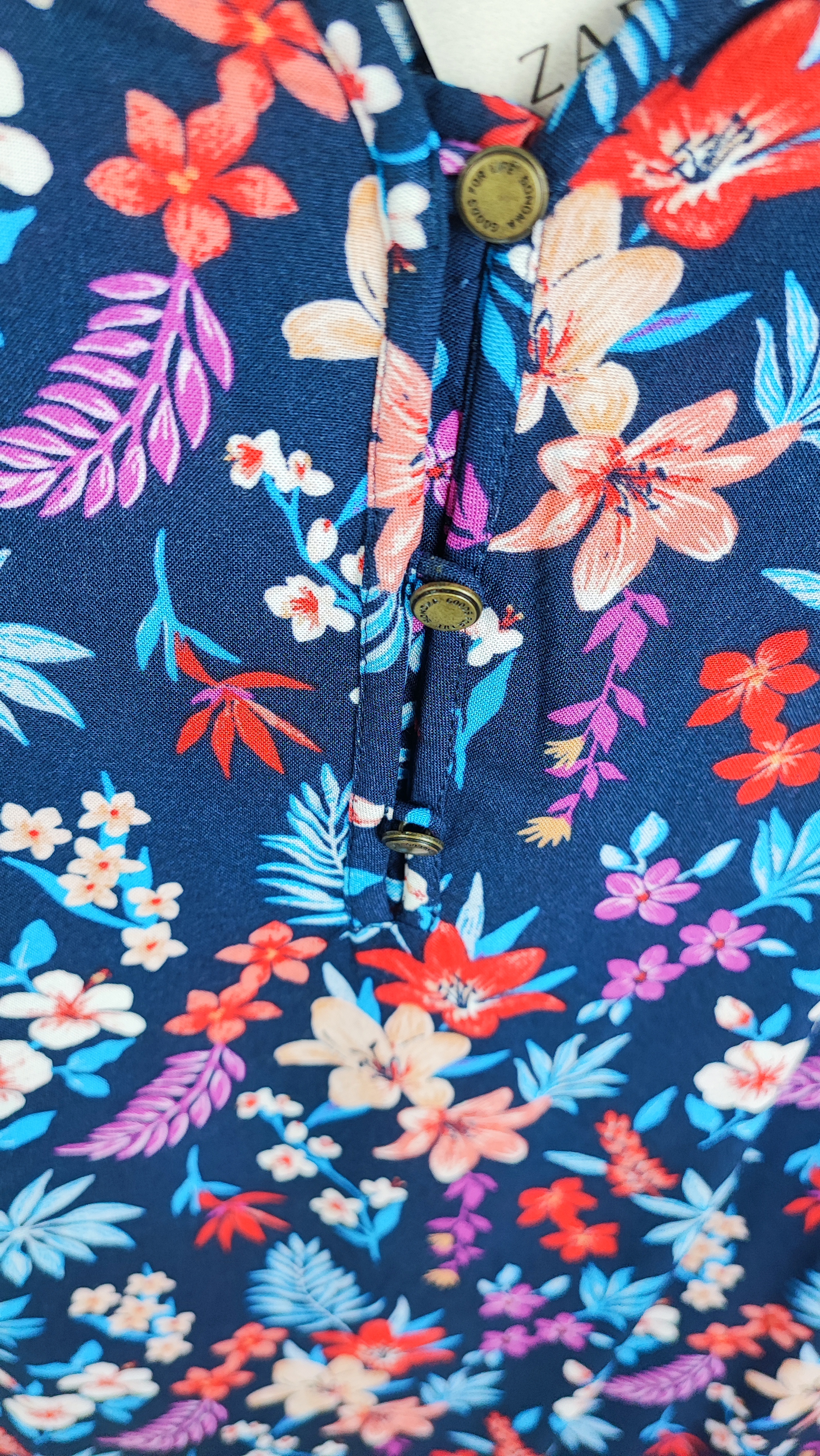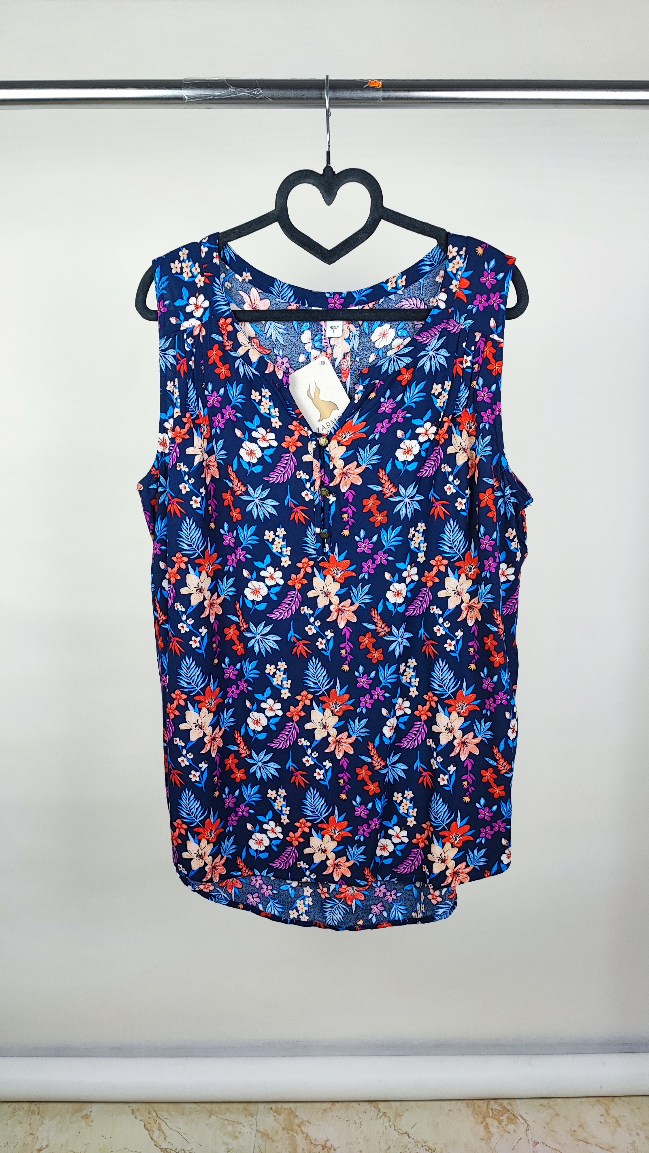 جنس این تاپ از ۱۰۰٪ ویسکوز (Rayon) است؛ پارچهای با الیاف طبیعی که قابلیت تنفس بالایی دارد و از تعریق جلوگیری میکند. این کار فوقالعاده سبک و ریزشدار است که روی اندام به زیبایی مینشیند. طرح گلهای استوایی و هاوایی روی زمینه سرمهای تیره، استایلی شاداب و تابستانی به شما میبخشد که برای استفاده روزمره، دورهمیها و حتی به عنوان زیرکت عالی است. یقه هفت ظریف و جزئیات تاشوی روی سرشانه، به این مدل سادگی و جذابیت خاصی بخشیده است. با خرید این کار، شما صاحب یک برند باکیفیت جهانی با قیمتی بسیار اقتصادی میشوید. تعداد این کار در انبار محدود است، پس همین حالا سفارشتان را ثبت کنید.