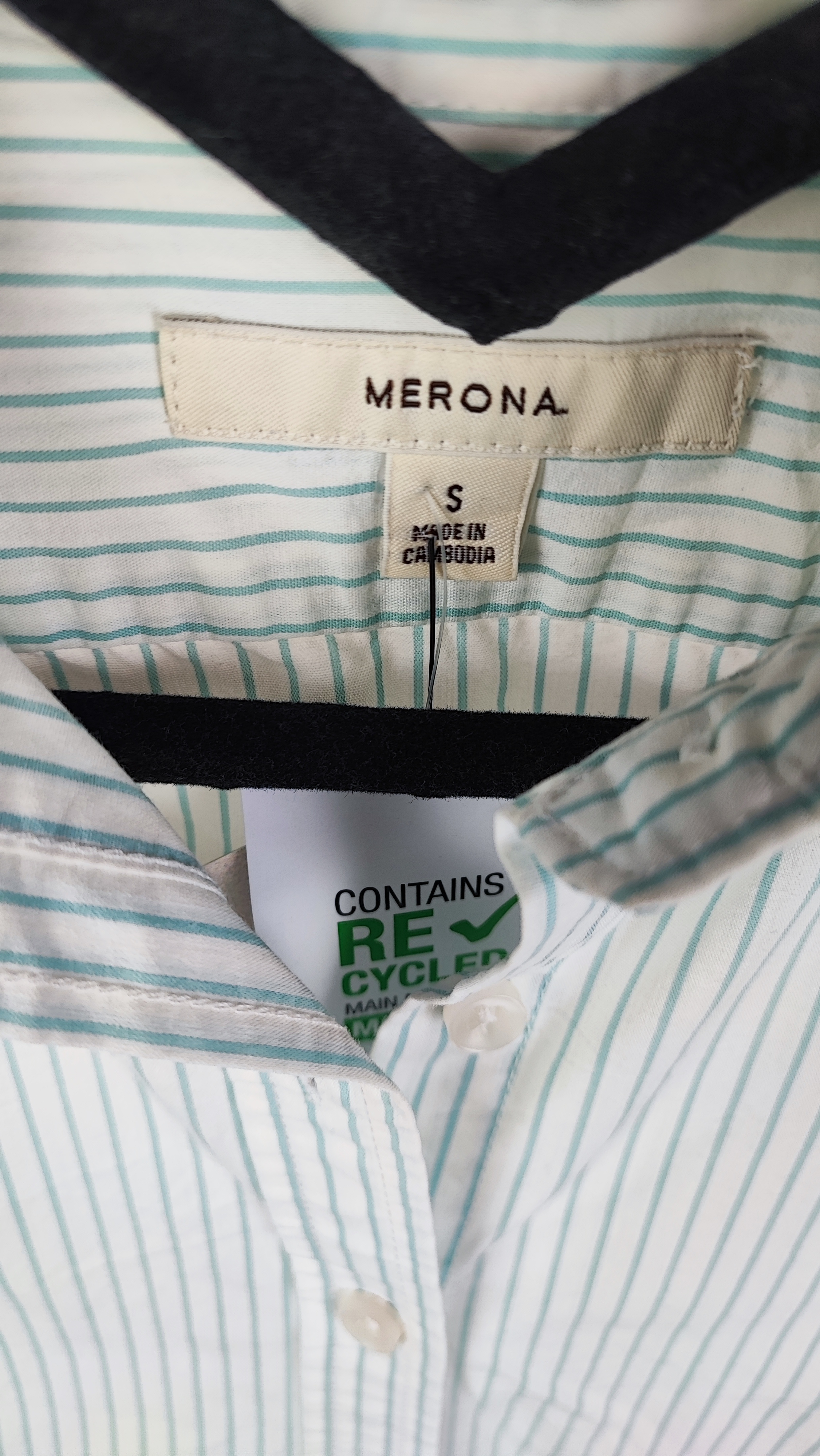 شومیز زنانه استوک وارداتی برند MERONA کد ۲۱۱۰ سایز ۳۸/۴۰ | راه راه سفید و سبز روشن