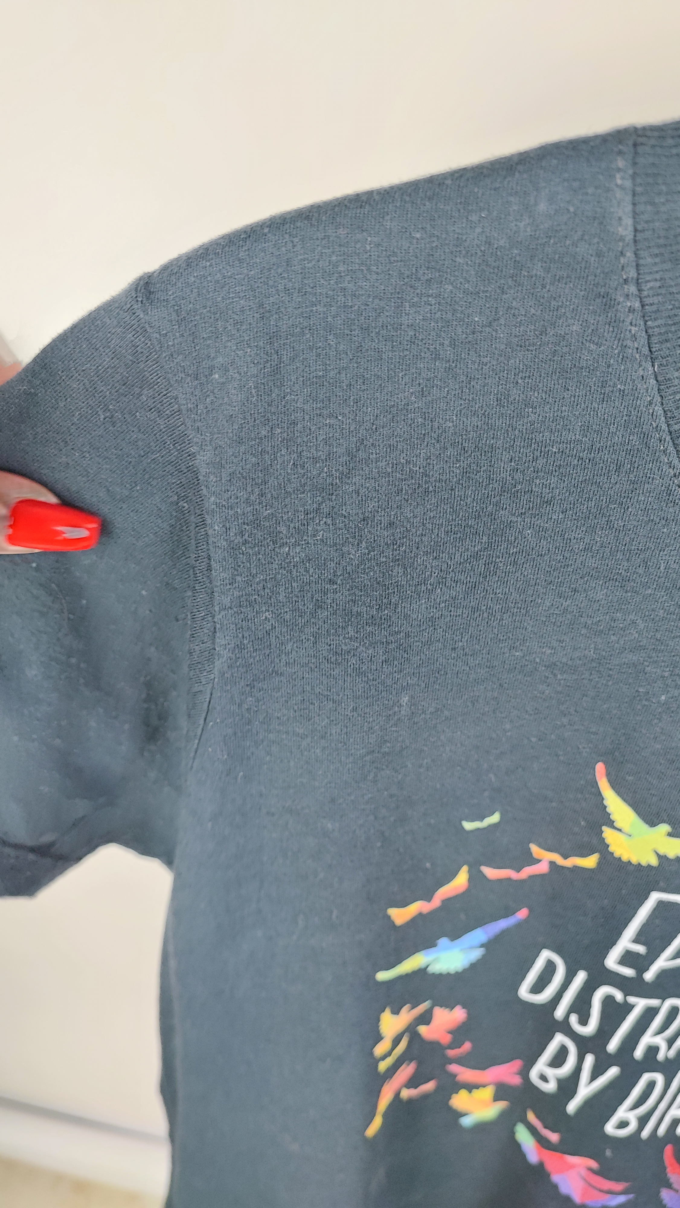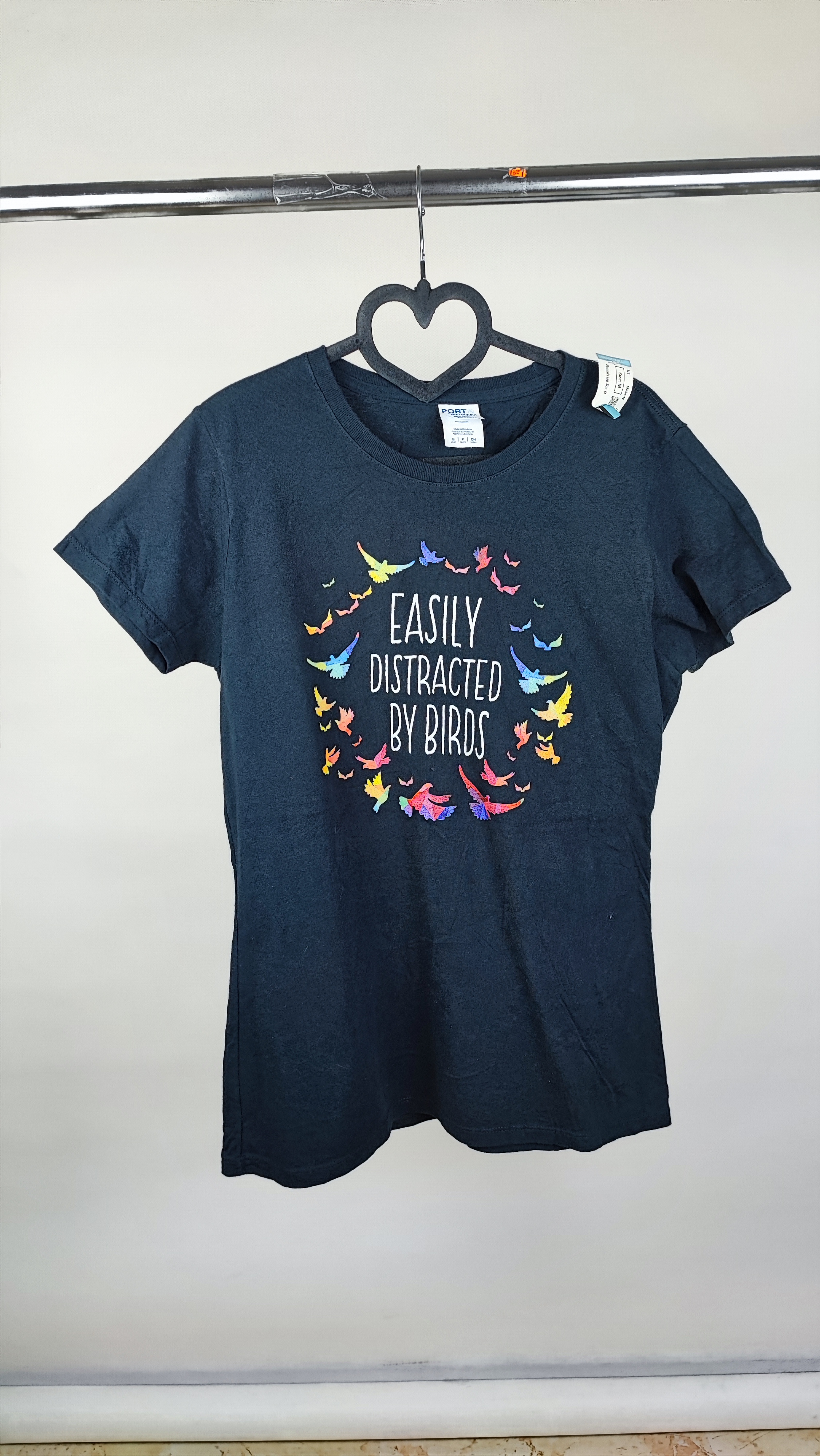 تیشرت زنانه وارداتی استوک مدل "Easily Distracted By Birds" کد 2 سایز 40-42 (S) | طرح پرندگان رنگینکمانی با قیمت استثنایی و تنخور عالی