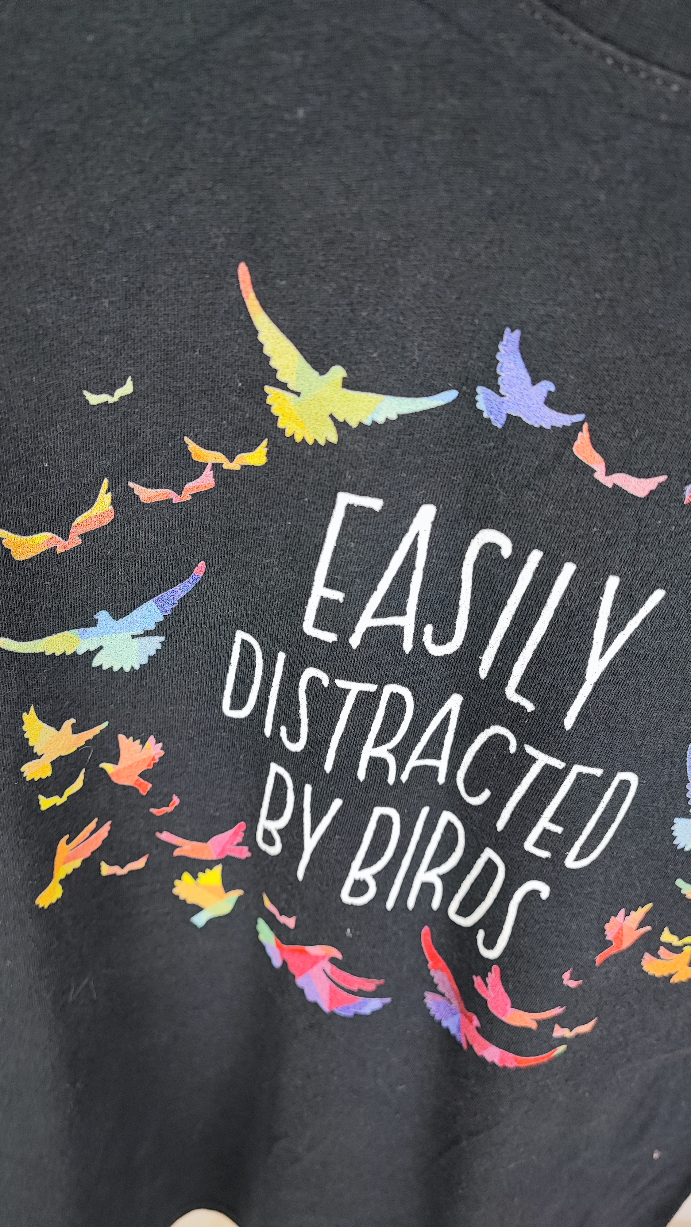 آیا شما هم از آن دسته افرادی هستید که با دیدن پرندهای در آسمان تمام تمرکزتان را از دست میدهید؟ پس این تیشرت زنانه با طرح بامزه و دوستداشتنی "Easily Distracted By Birds" دقیقاً برای شما طراحی شده است!