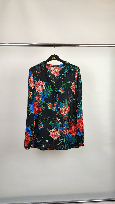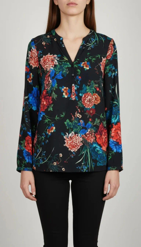 شومیز زنانه حریر مشکی طرحدار استوک کد ۷۸۰ | مدل یقهدار رنگی زرماه گالری
