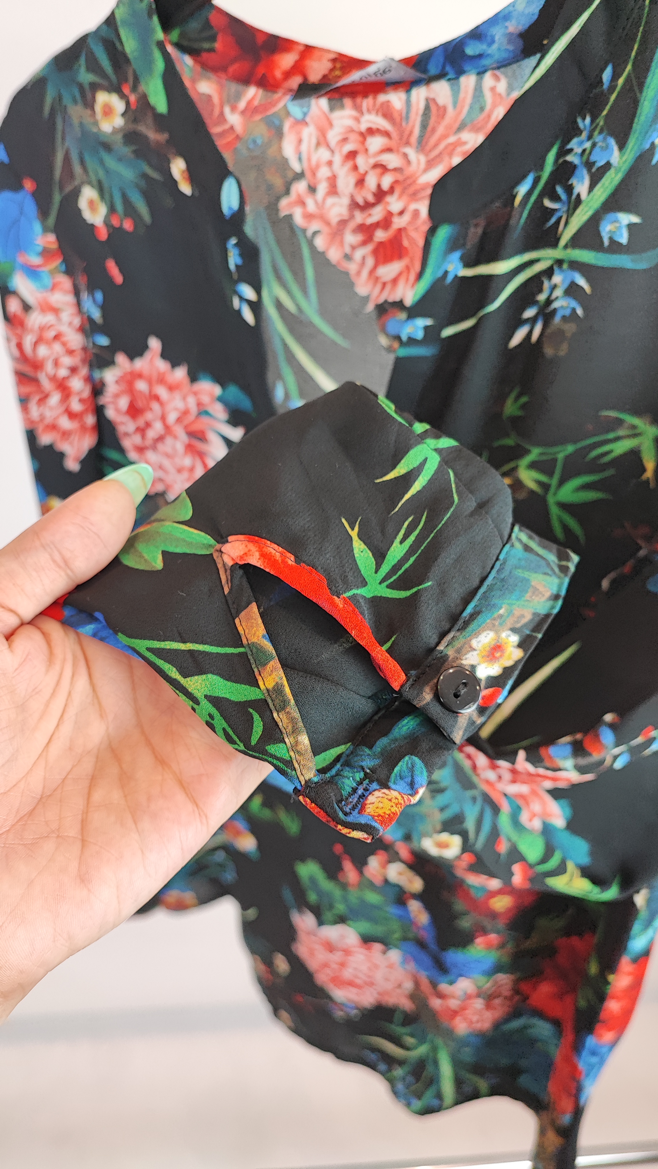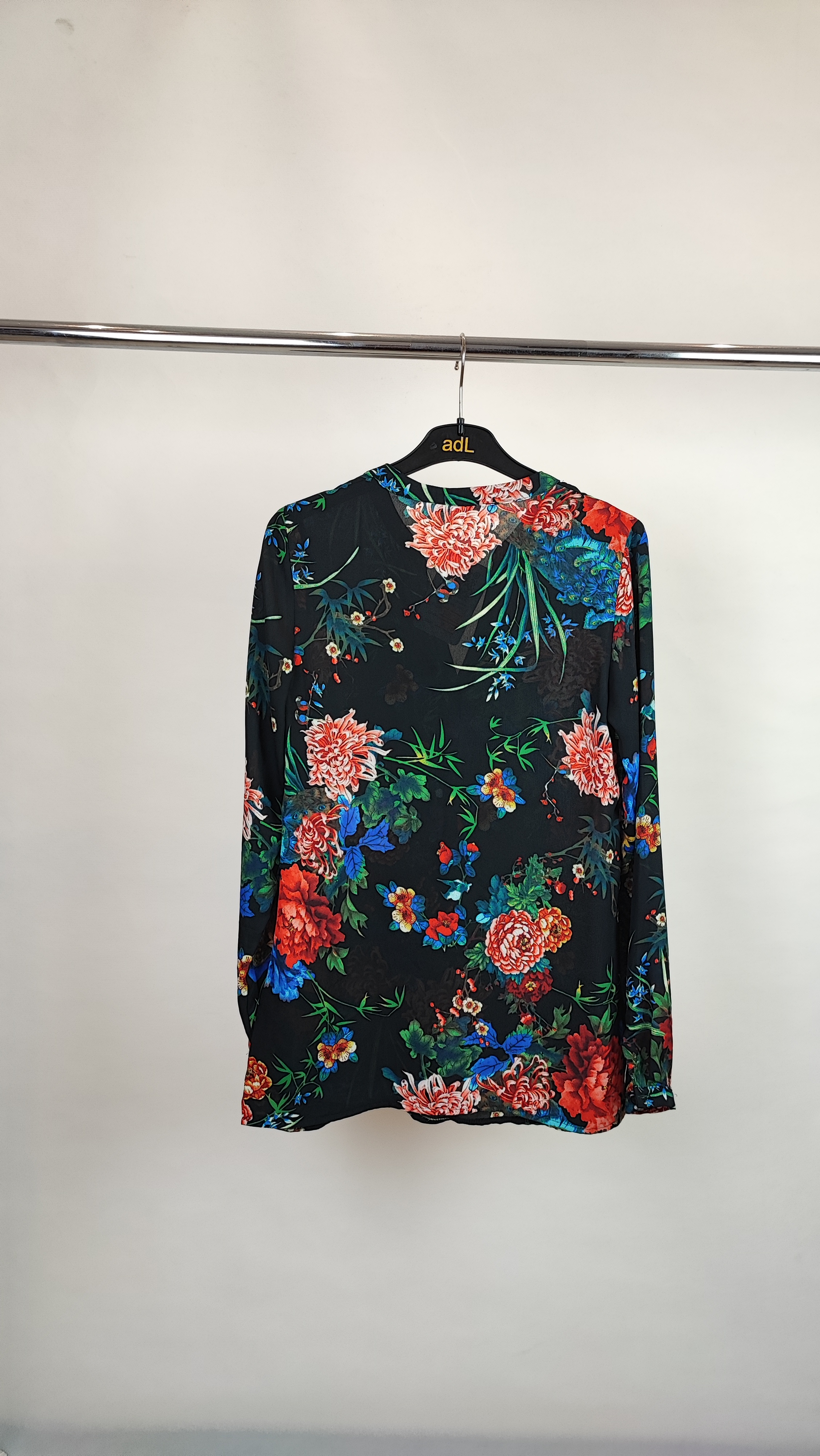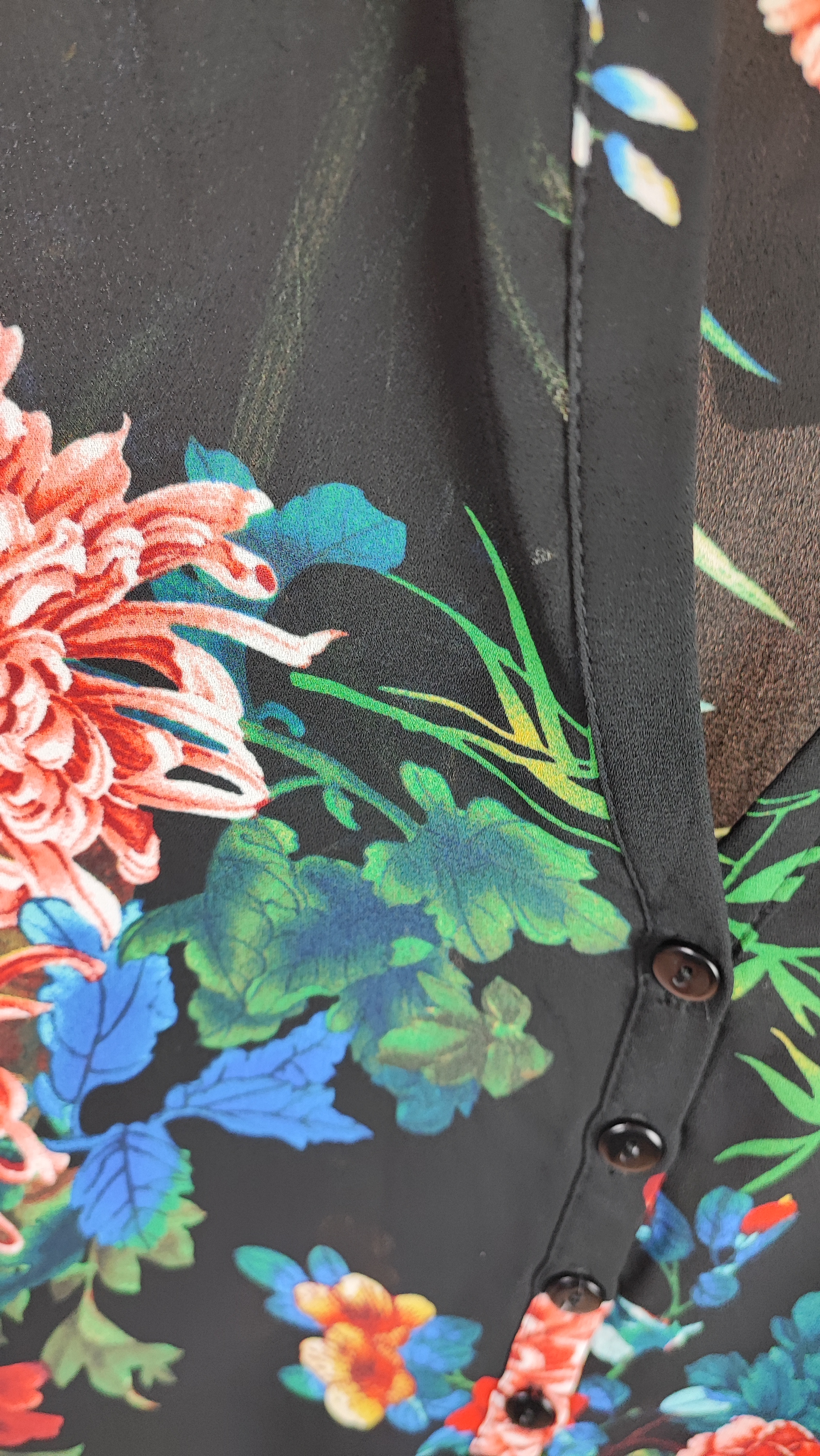 شومیز زنانه حریر مشکی طرحدار استوک کد ۷۸۰ | مدل یقهدار رنگی زرماه گالری