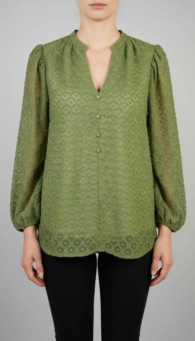 شومیز زنانه سبز روشن استوک کد ۲۲۱ | مدل آستین بلند شیک زرماه گالری