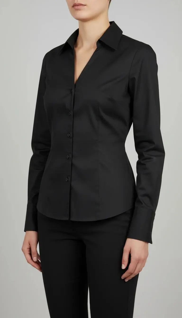 شومیز زنانه مشکی ساده استوک سایز بزرگ کد ۱۷۷۱ | مناسب ۵۰–۵۲