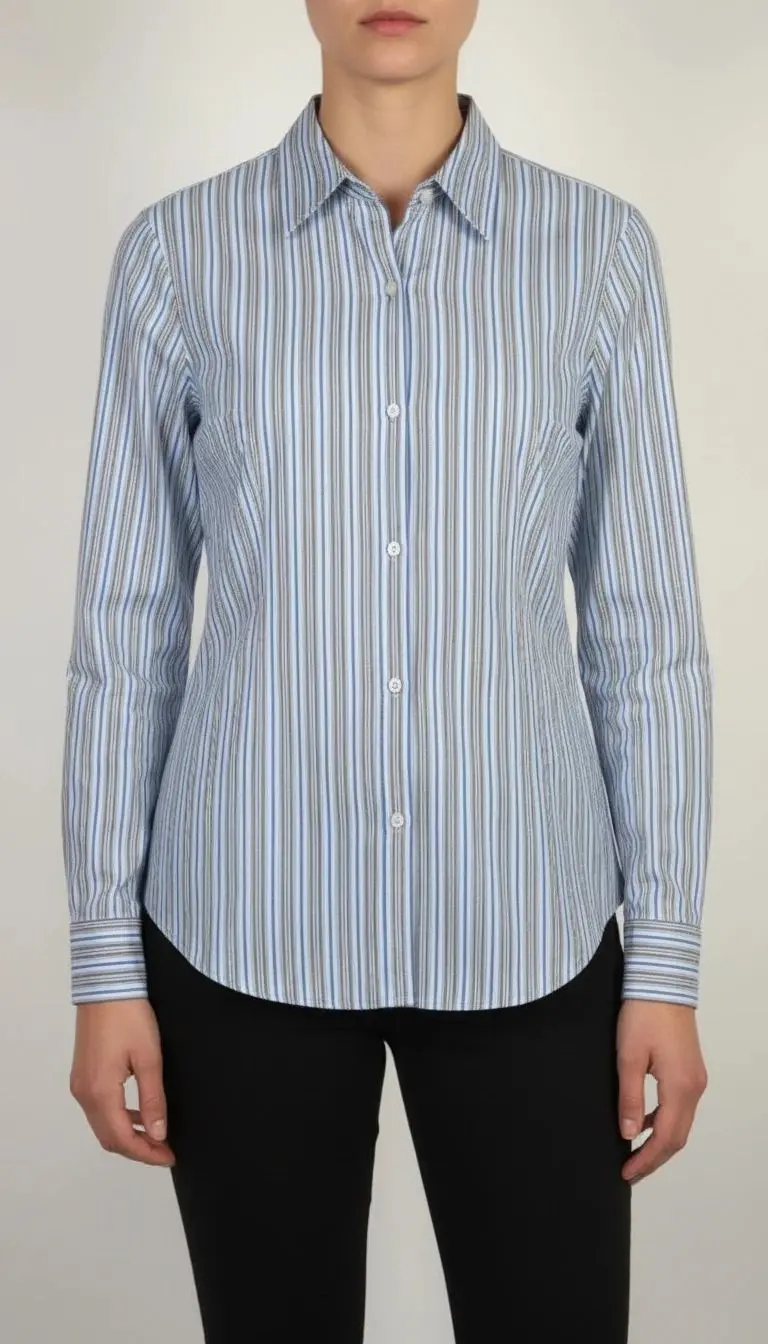 شومیز زنانه آبی راهراه استوک سایز بزرگ کد ۱۷۷۴ | مناسب سایز ۴۴–۴۶