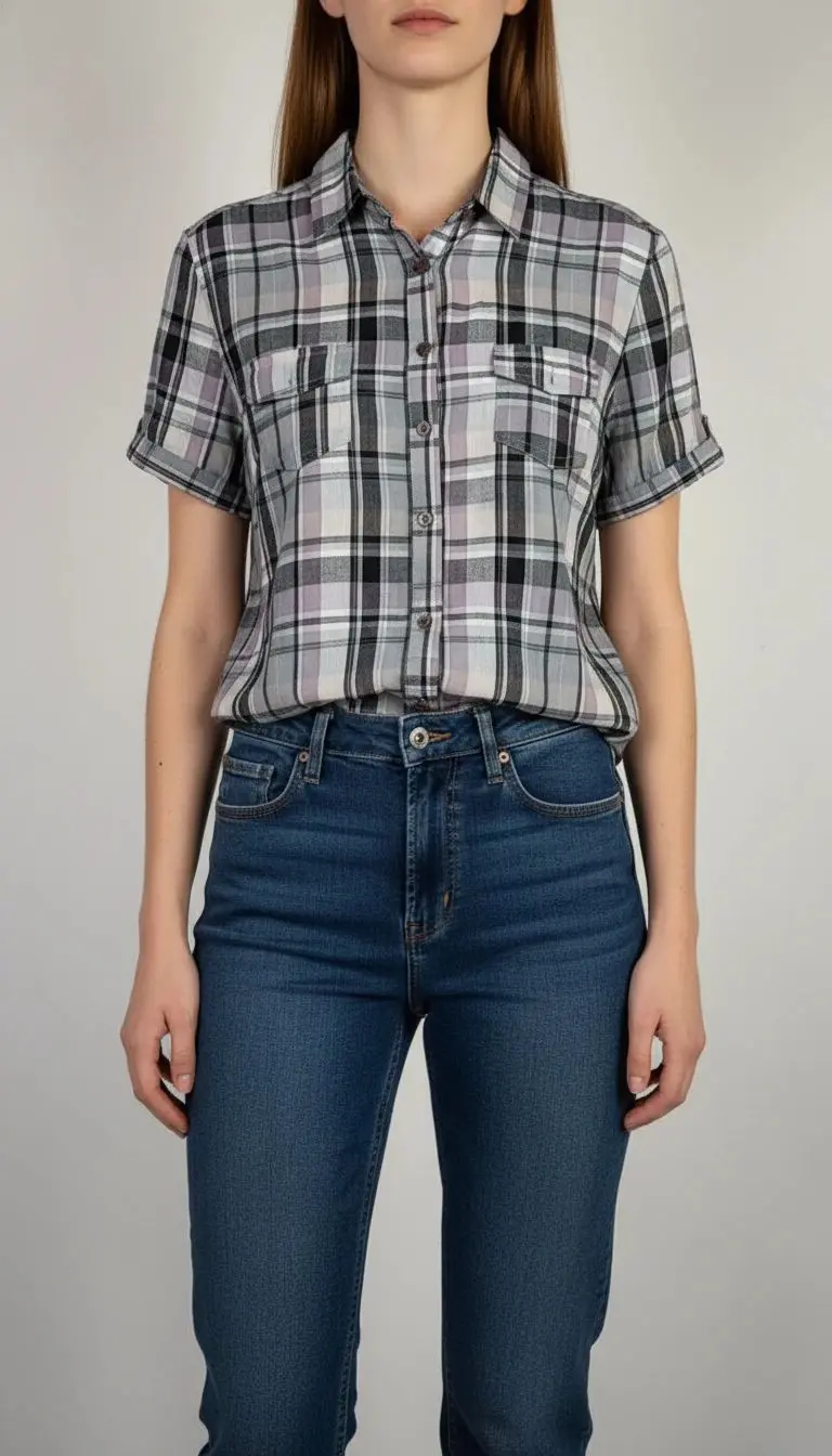 شومیز زنانه استوک چهارخانه کد ۱۴۹ | مدل آستین کوتاه نخی و راحت