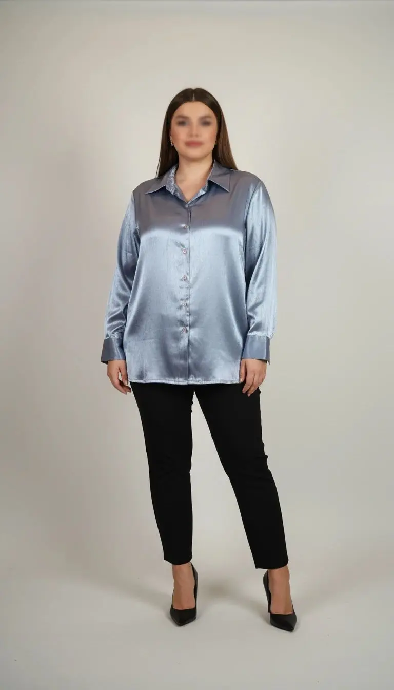 شومیز زنانه آبی روشن سایز بزرگ استوک کد ۱۶۴۲ | مناسب سایز ۴۴–۴۶ | زرماه گالری