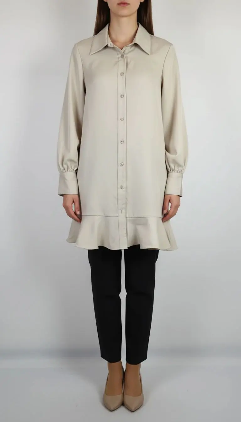 شومیز مانتویی زنانه کرم استوک کد ۸۶۲ | مدل بلند و خوشدوخت زرماه گالری