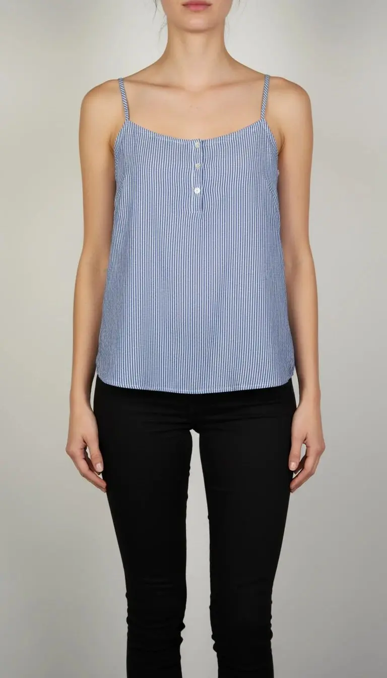 تاپ زنانه استوک کد ۱۲۷۹ | تاپ بندی آبی روشن سبک و خنک سایز ۳۸–۴۰ با تنخور آزاد | زرماه گالری ✨🌿