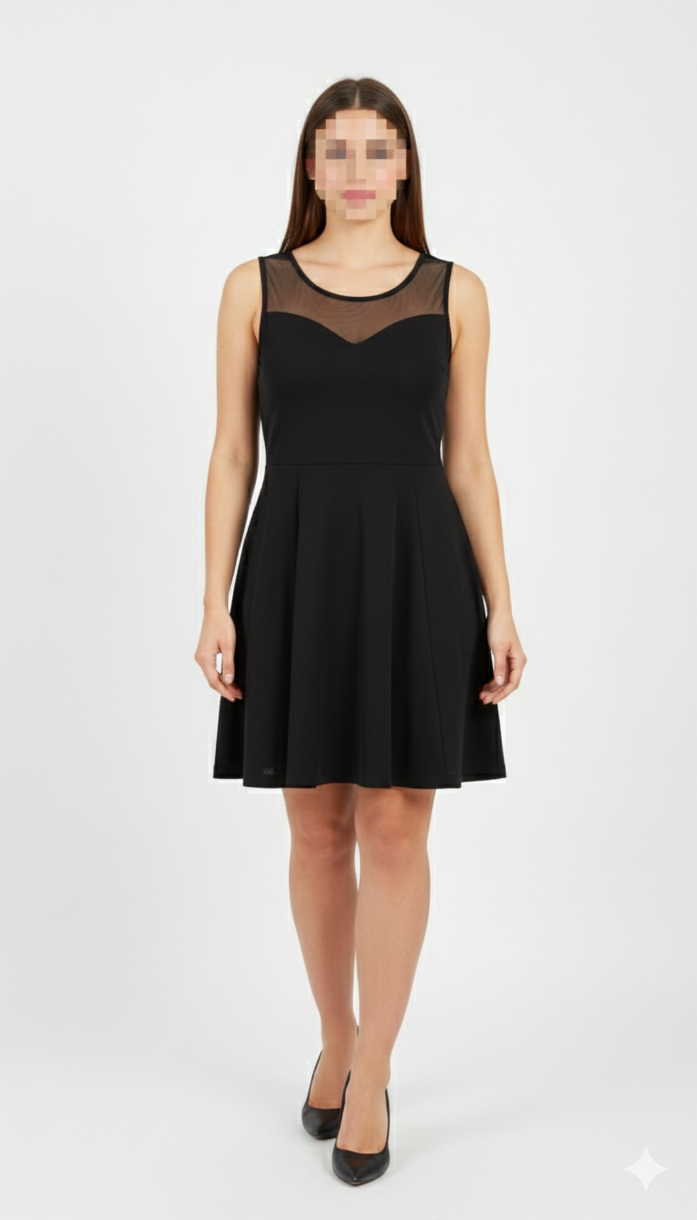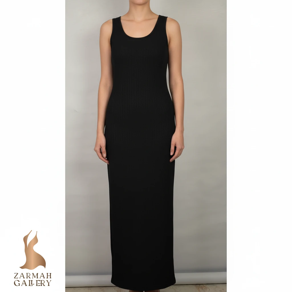 پیراهن زنانه استوک کد ۱۱۳۳ | پیراهن مشکی بدونآستین برشدار سایز ۳۸–۴۰ با استایل شیک و مجلسی | زرماه گالری ✨🌿
