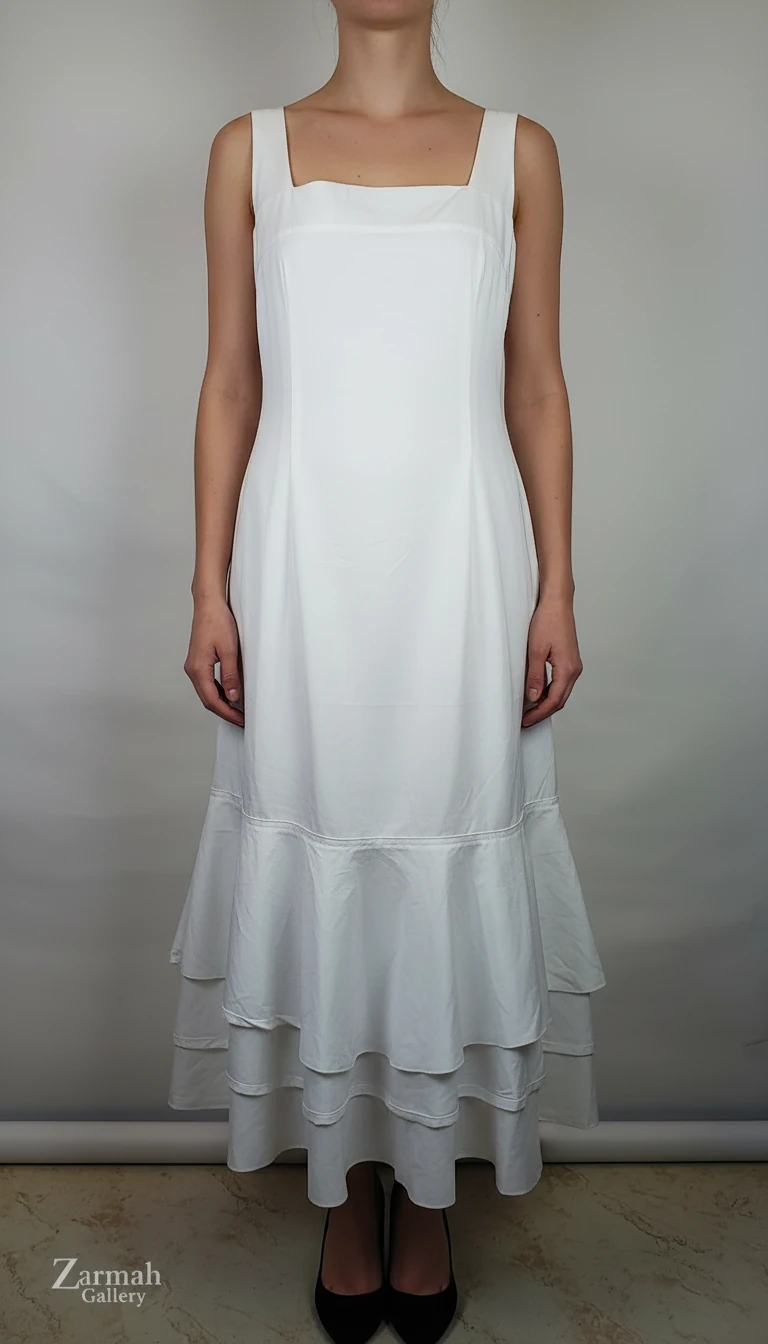 پیراهن زنانه وارداتی استوک سفید بنددار کد ۲۰۴۳ | سایز ۴۰–۴۲