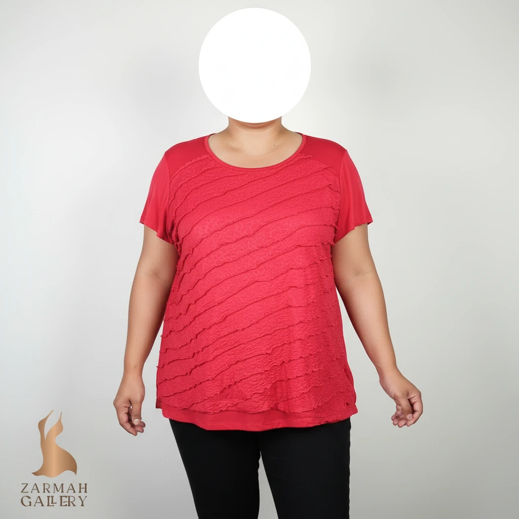 تاپ زنانه استوک کد ۱۳۸۰ | تاپ قرمز هالتر آزاد و خنک سایز ۴۸–۵۰ با تنخور راحت و جذاب | زرماه گالری ❤️✨