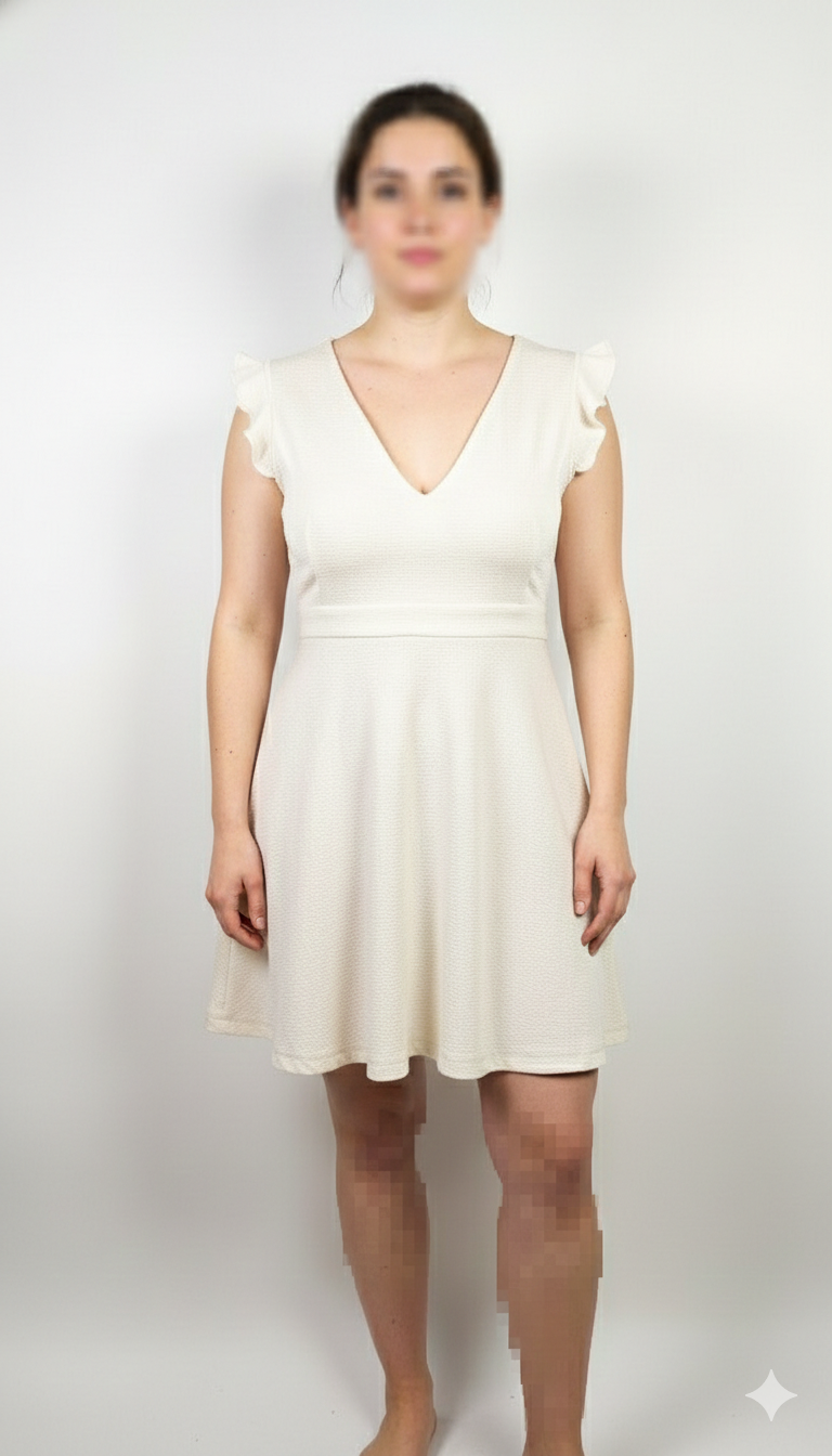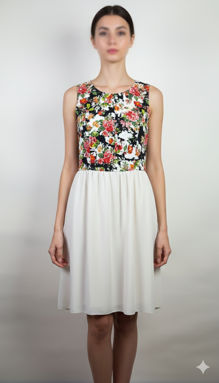 پیراهن زنانه وارداتی استوک کد ۱۰۰۱ مناسب سایز ۳۶-۳۸ | مدل عروسکی کمرجدا بالاتنه گلدار رنگ سفید