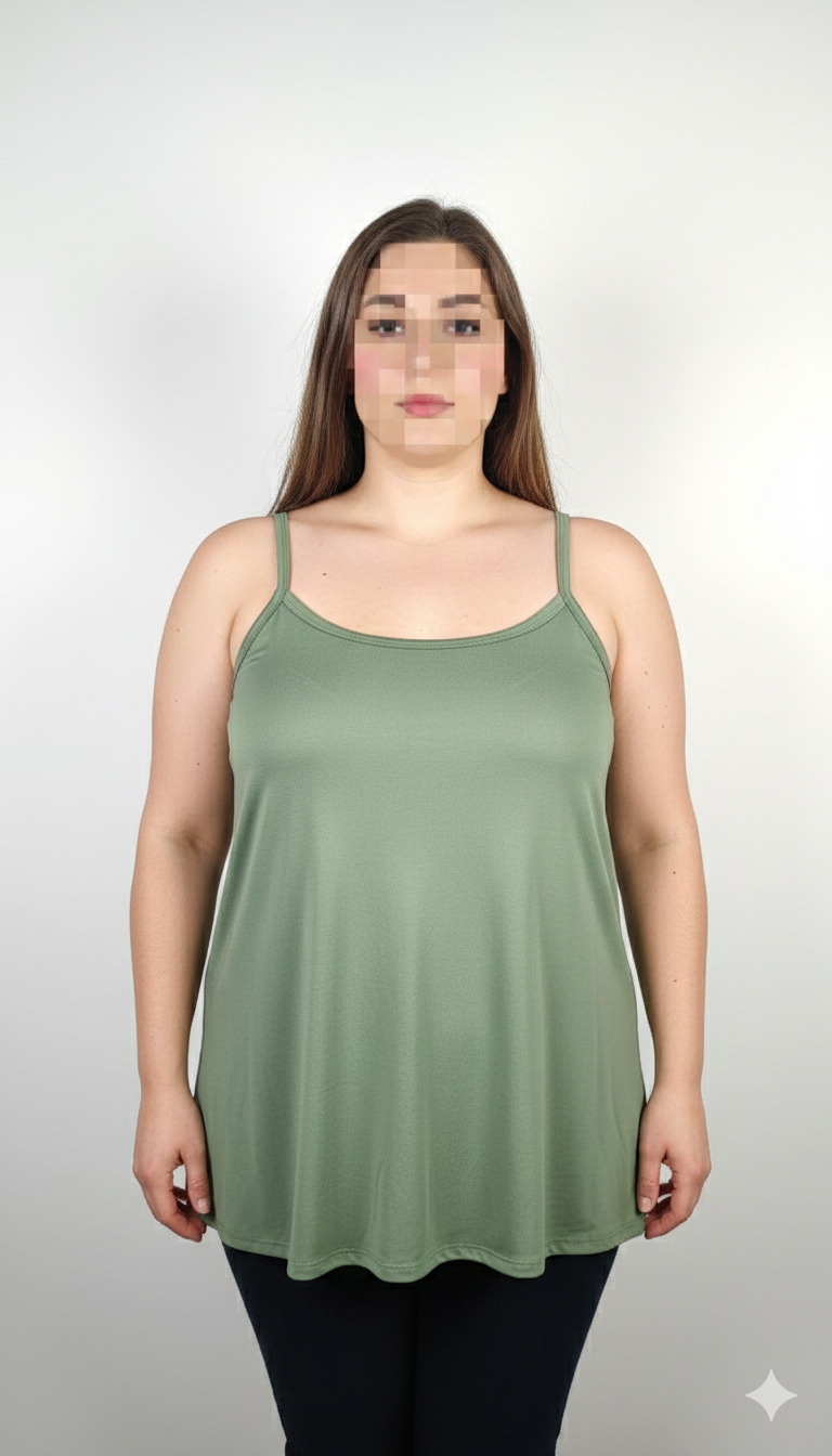 تاپ زنانه وارداتی استوک کد ۲۰۸۹ مناسب سایز بزرگ ۴۸-۵۰ | تاپ بنددار نخی رنگ سبز زیتونی ملایم
