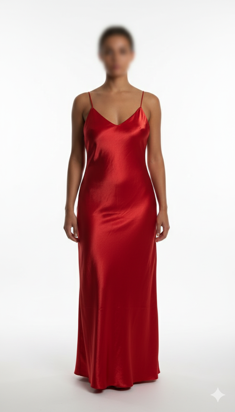 پیراهن زنانه مجلسی وارداتی استوک کد ۲مناسب سایز ۳۸-۴۰ | پیراهن ماکسی ساتن قرمز براق مدل اسلیپ