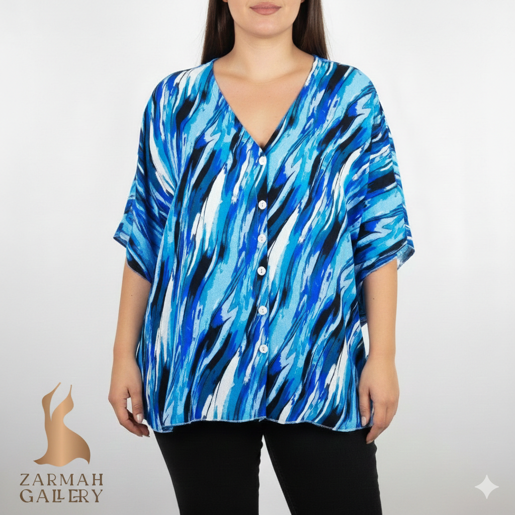 شومیز زنانه استوک وارداتی برند CBR کد ۲۱۷۳ سایز ۴۴.۴۶ | شومیز آستینکیمونو طرحدار با قیمت ویژه