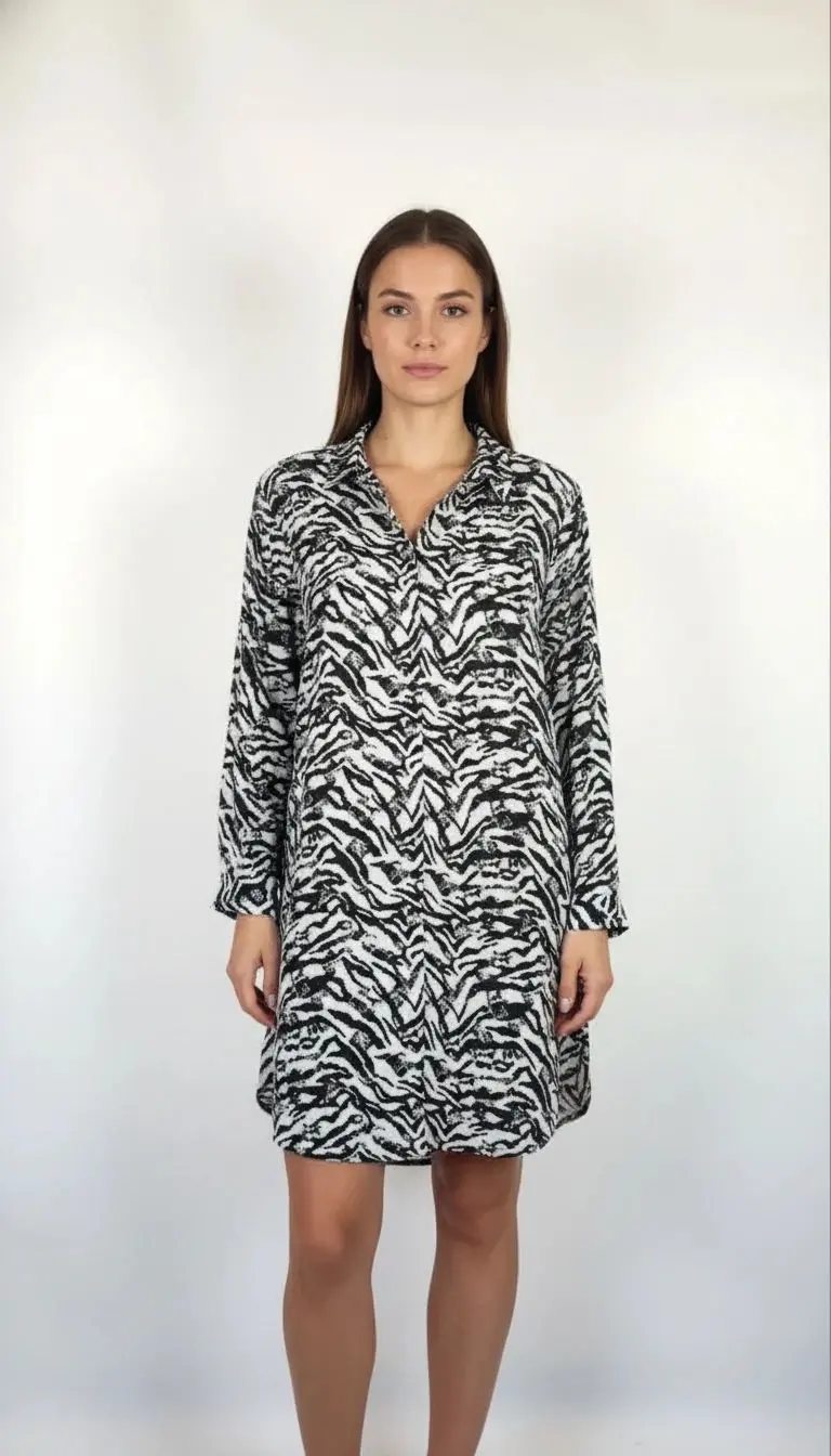تونیک زنانه استوک طرح مشکی سفید کد ۸۴۶ | سبک و شیک سایز ۳۴ تا ۳۶