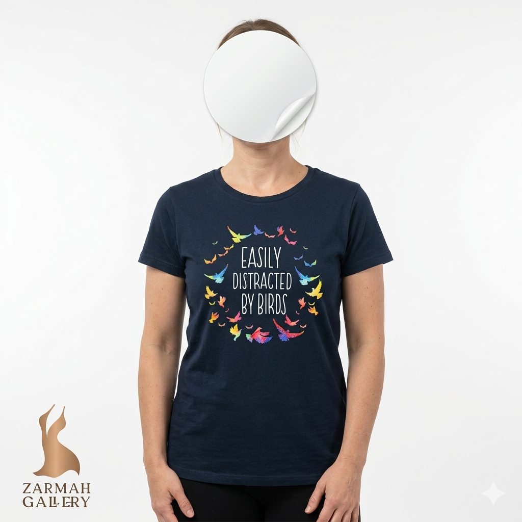 تیشرت زنانه وارداتی استوک مدل "Easily Distracted By Birds" کد 2 سایز 40-42 (S) | طرح پرندگان رنگینکمانی با قیمت استثنایی و تنخور عالی