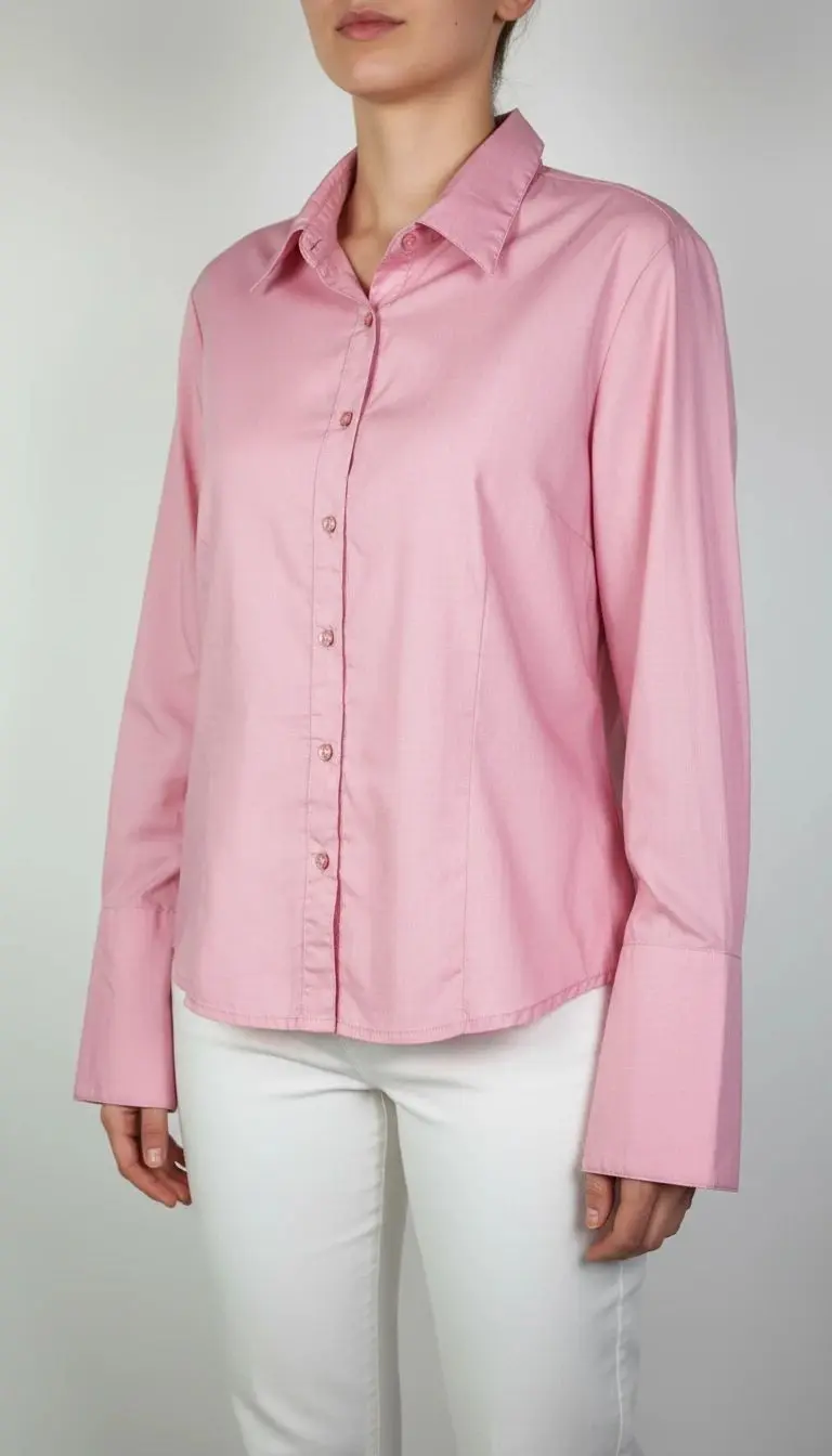 ناموجودشومیز زنانه استوک کد ۲۵۱ | شومیز صورتی آستینمتوسط یقهبرگردان سایز ۴۰–۴۲ | زرماه گالری 🌸