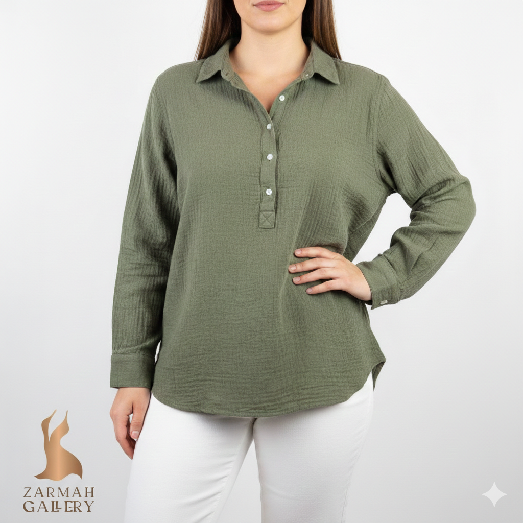 شومیز زنانه وارداتی استوک زیتونی کد ۱۸۲۷ | سایز ۴۲–۴۴