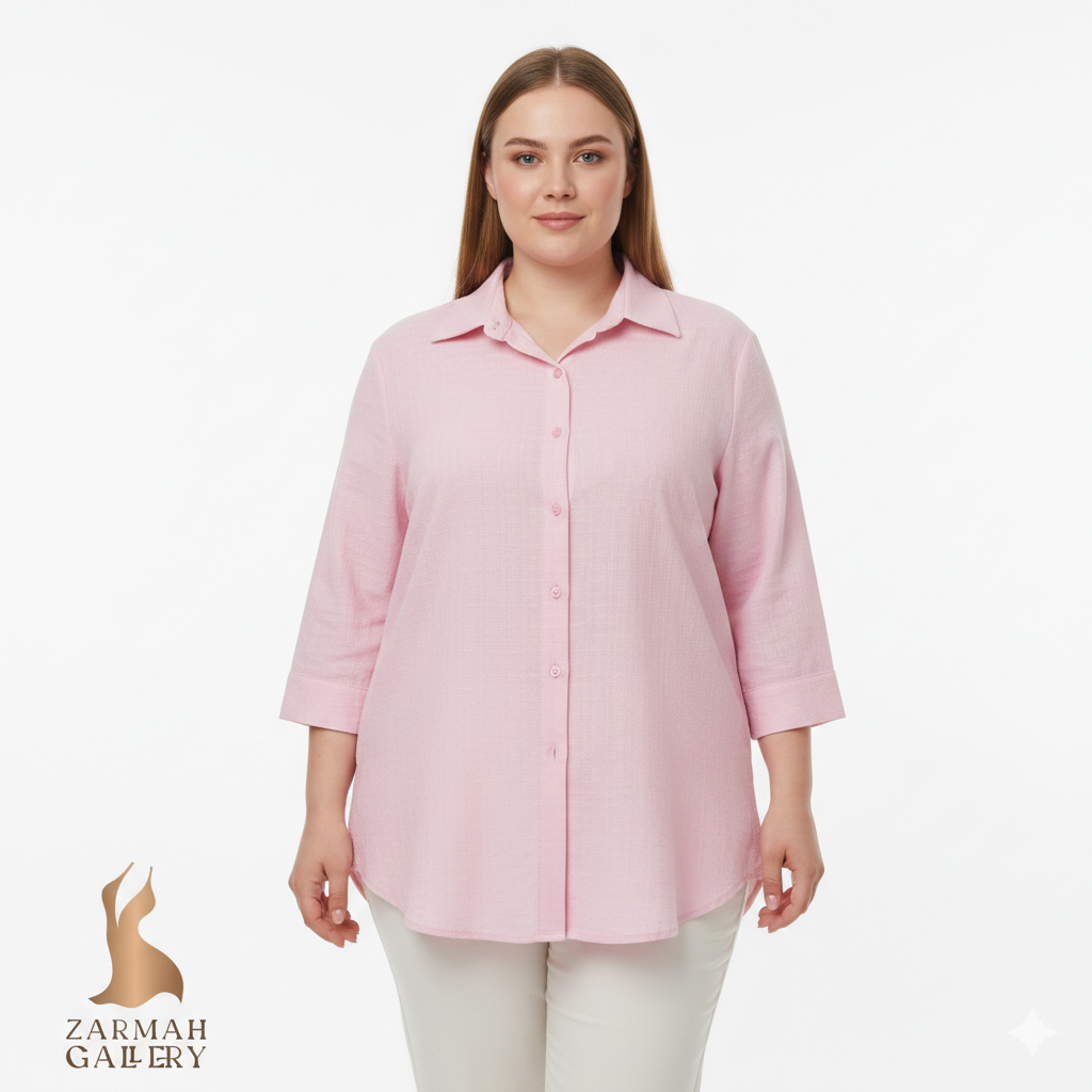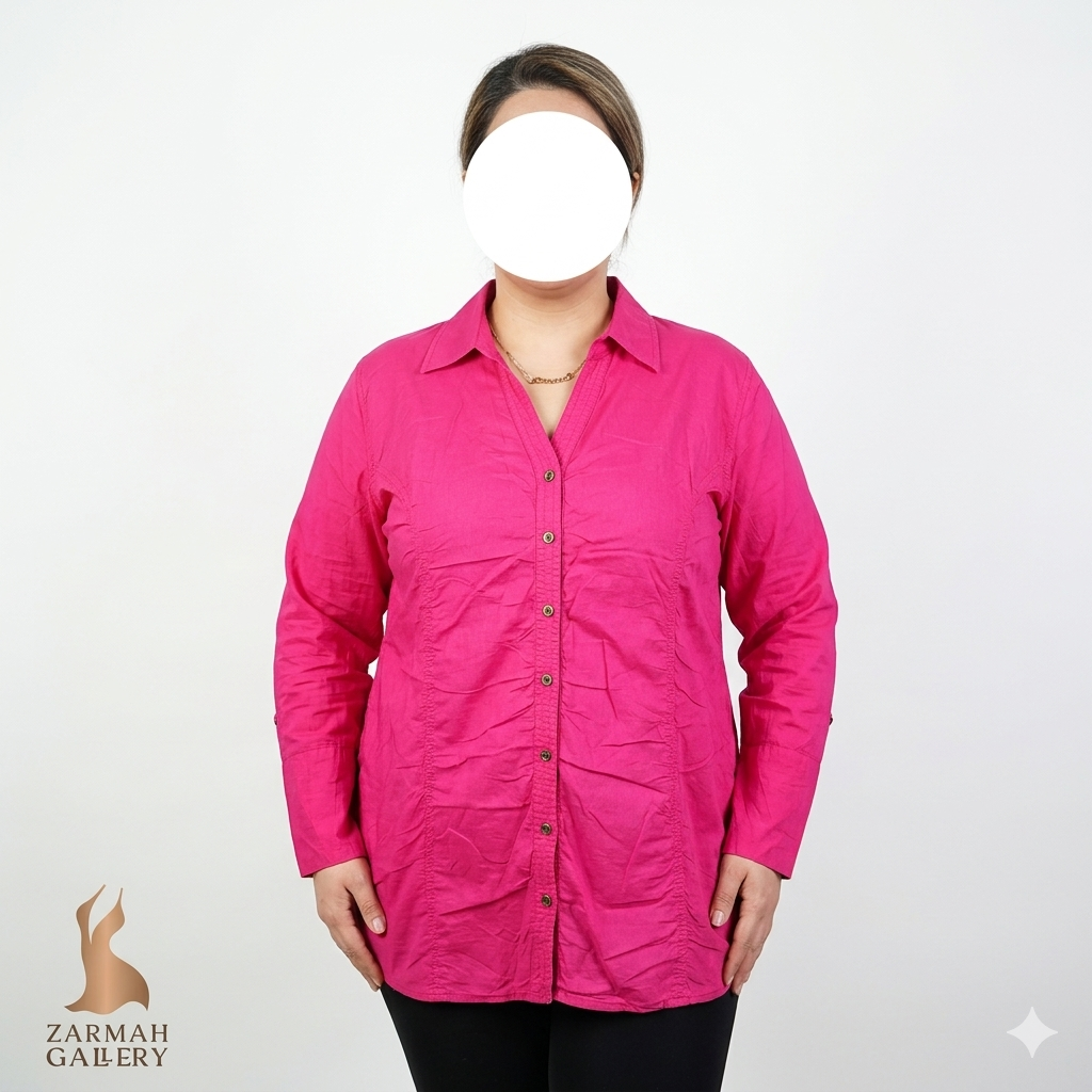 شومیز زنانه وارداتی استوک سایز بزرگ کد ۱۸۳۶(دو دکمه افتاده) | ساده، دوقد، مناسب ۴۸–۵۰