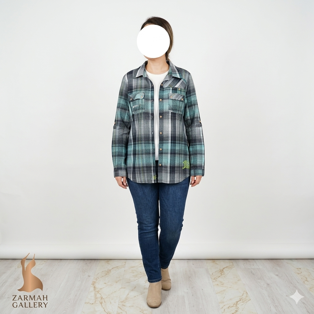 شومیز زنانه استوک کد ۷۸۳ | شومیز چهارخانه مجلسی و روزمره سایز ۳۸–۴۰ | زرماه گالری 🤍🖤