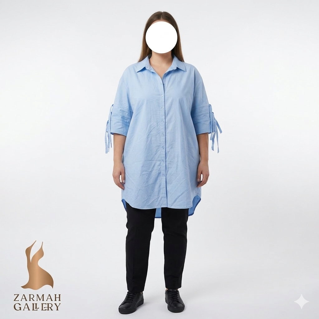 شومیز زنانه وارداتی استوک سایز بزرگ کد ۱۸۹۹ | آبی روشن، آستین نیمهبلند، مناسب ۴۸–۵۰