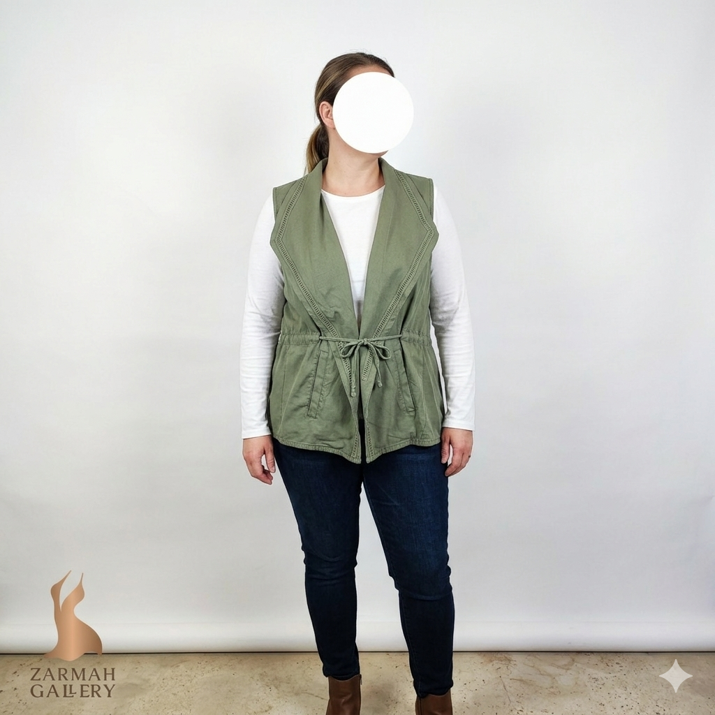 جلیقه زنانه استوک وارداتی برند Mudd کد ۲۲۲۰ سایز مدیوم | جنس تنسل با نوار دوزی تزیینی خاص