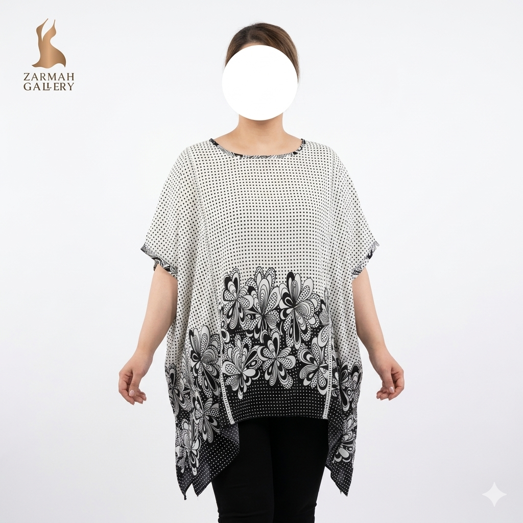 تونیك زنانه سایزبزرگ وارداتی استوک مدل خفاشی کد ۲۲۹۴ فریسایز | با پارچه طرحدار خاص